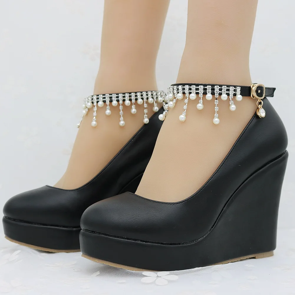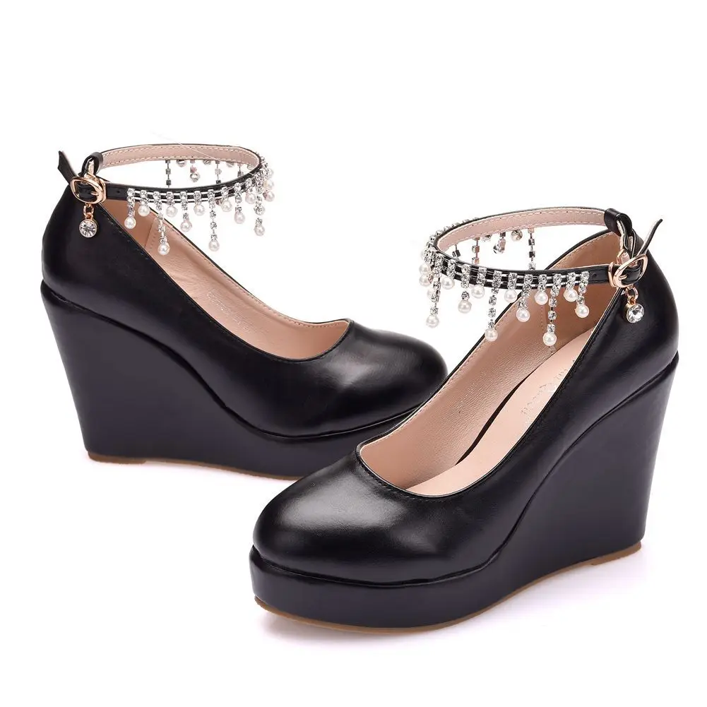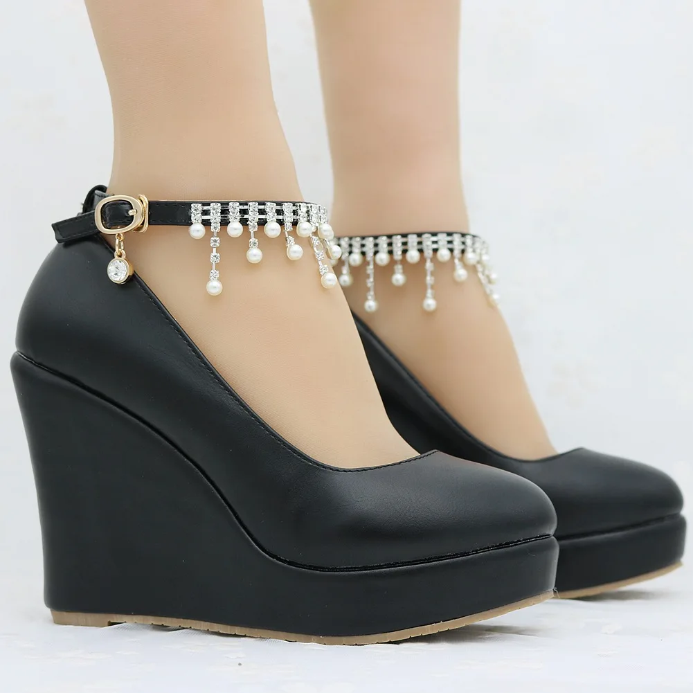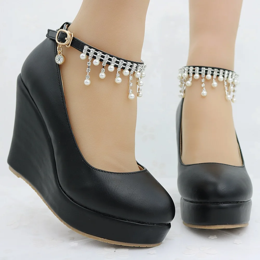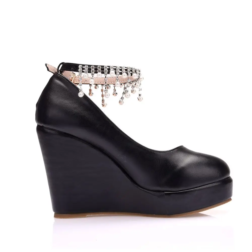 11cm White Round Head Wedges Platform Shoes Women Tassel Flowing High Heel Shoes Plus Size for Wedding Party Chaussure Femme