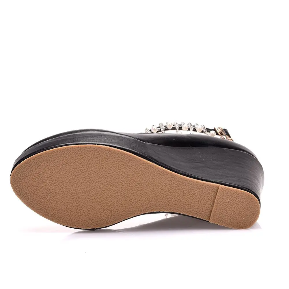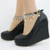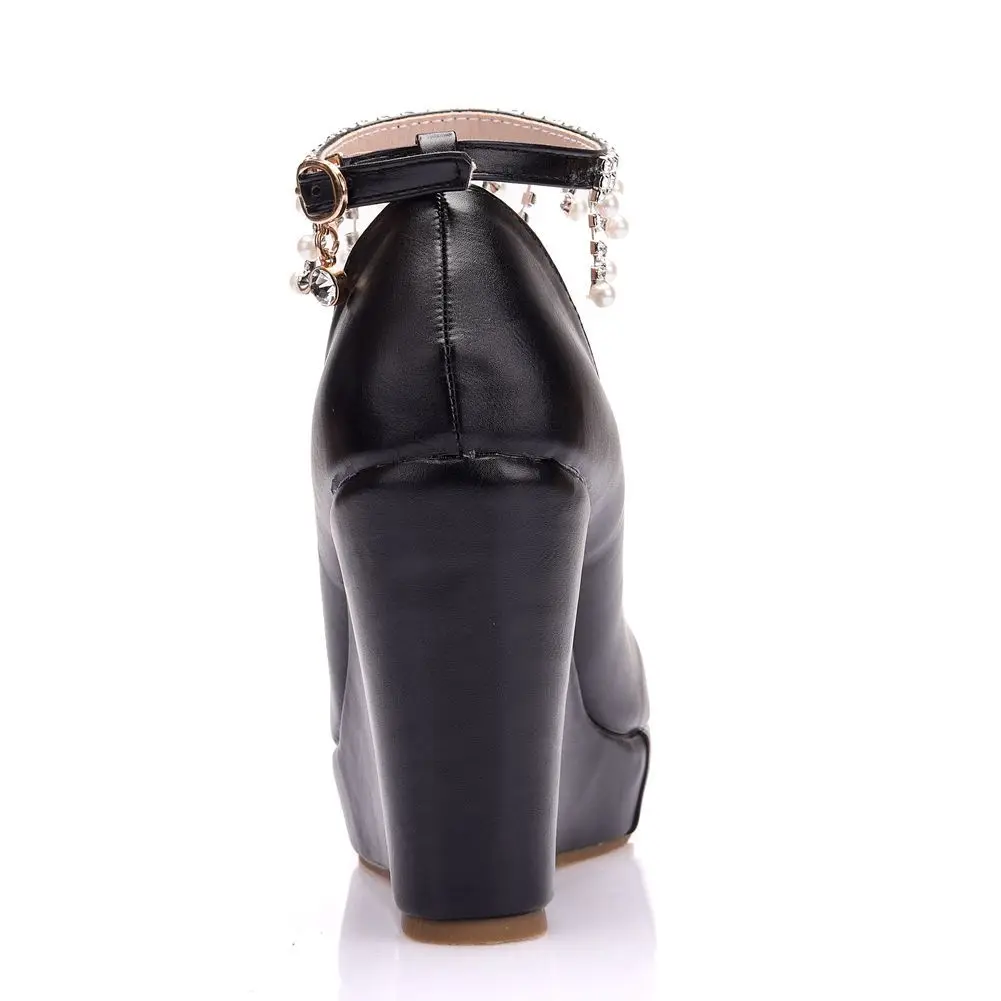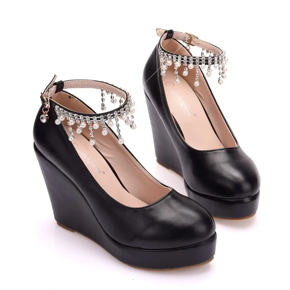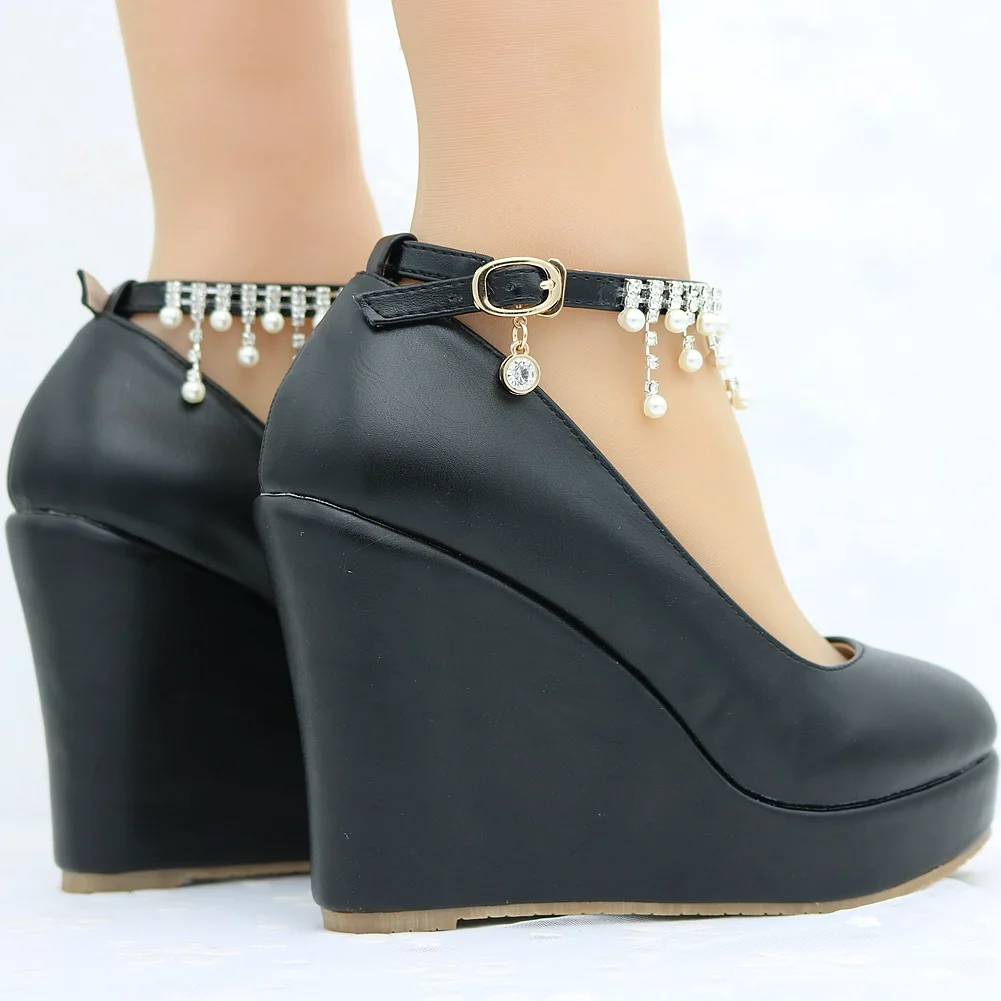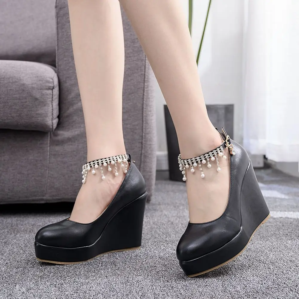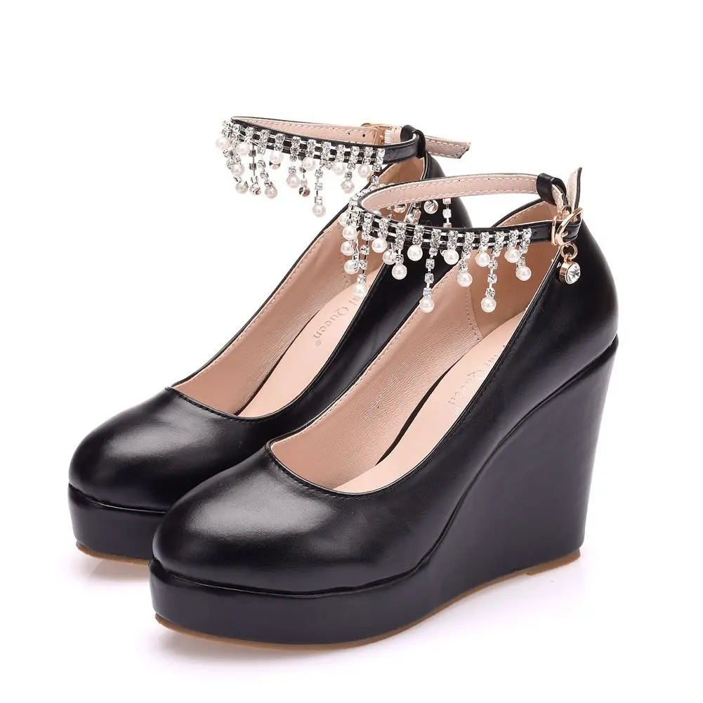 11cm White Round Head Wedges Platform Shoes Women Tassel Flowing High Heel Shoes Plus Size for Wedding Party Chaussure Femme