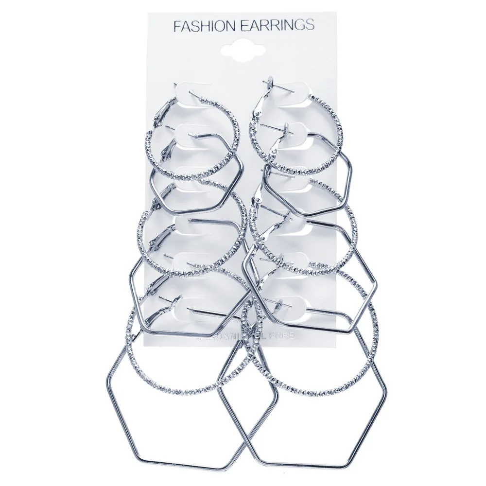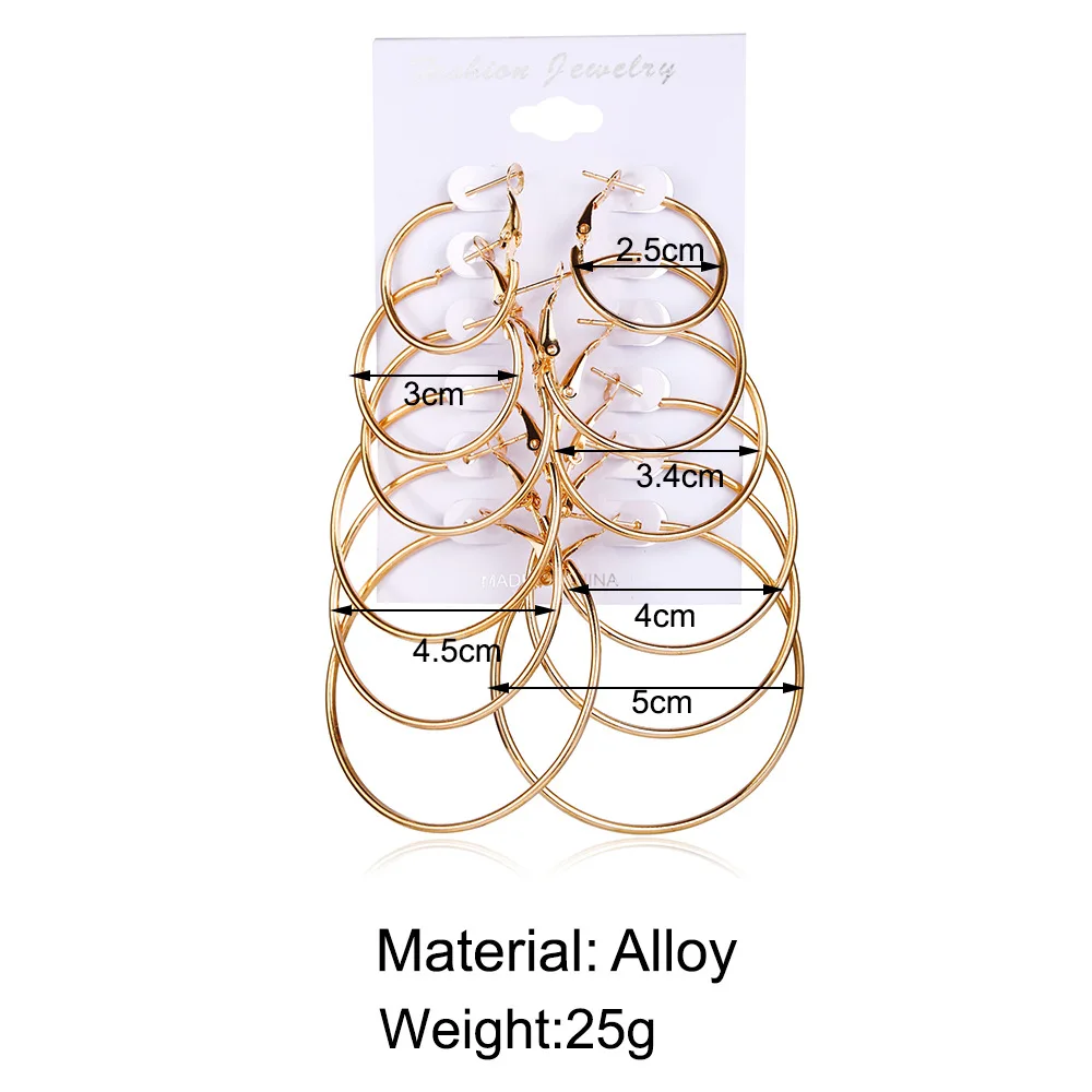 12PCS Set Simple Hoop Earrings Set Big Geometry Round Circle Earring for Women Girls Gold Color Metal Hyperbole Party Jewelry
