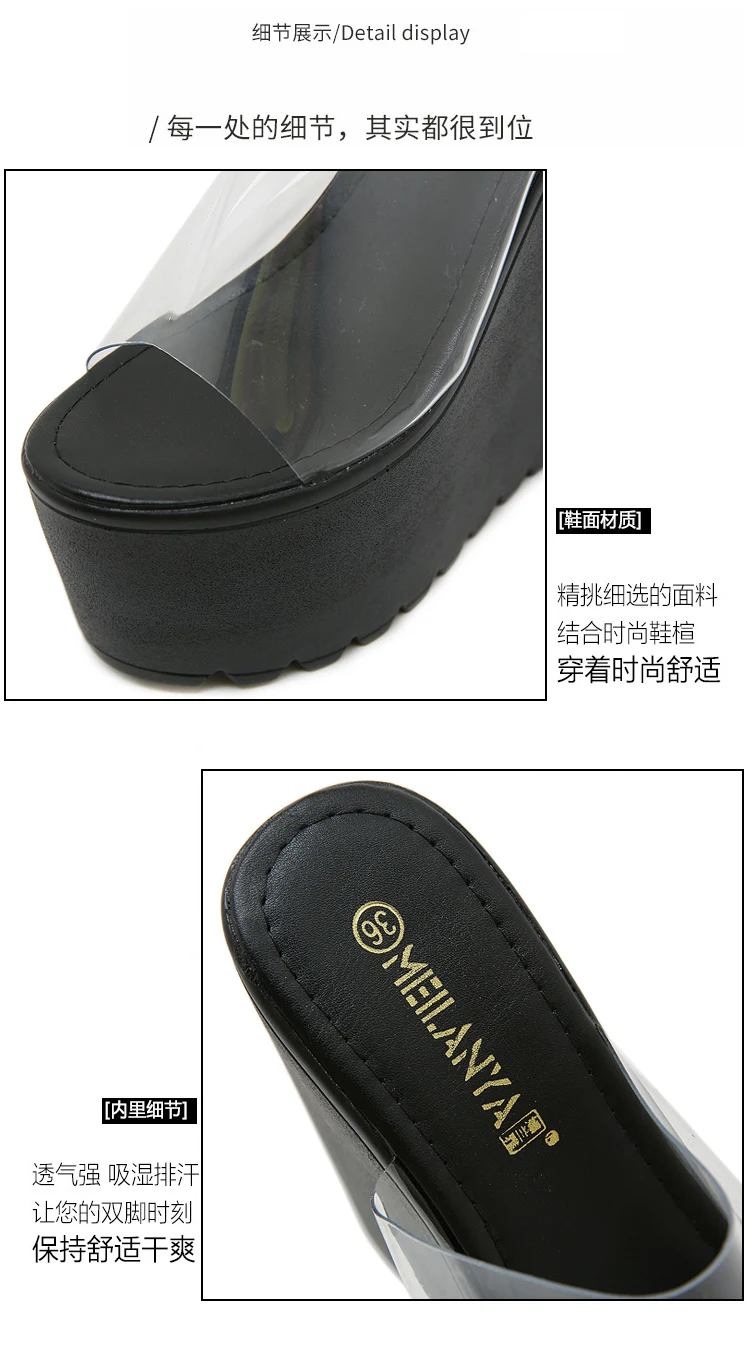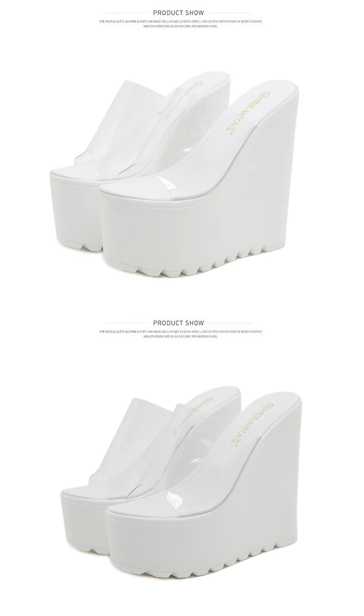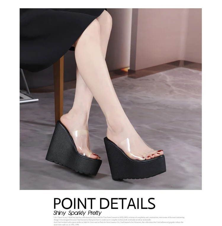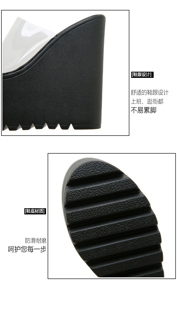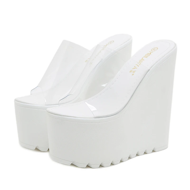 16CM Summer Concise Clear Transparent Peep Toe Platform Wedges Slippers Sandals Women Fashion High Heels Runway shoes