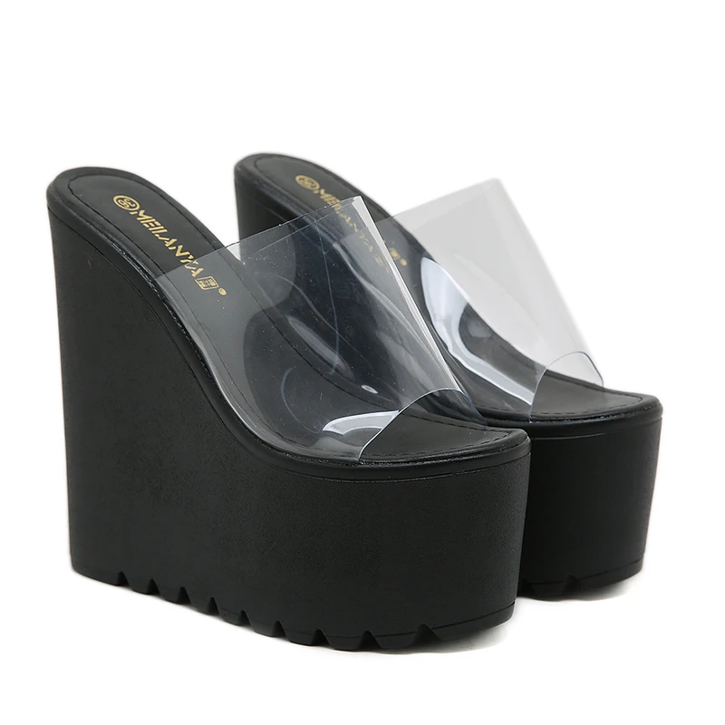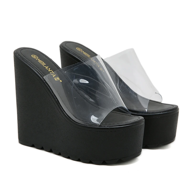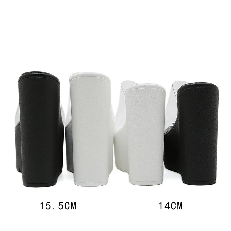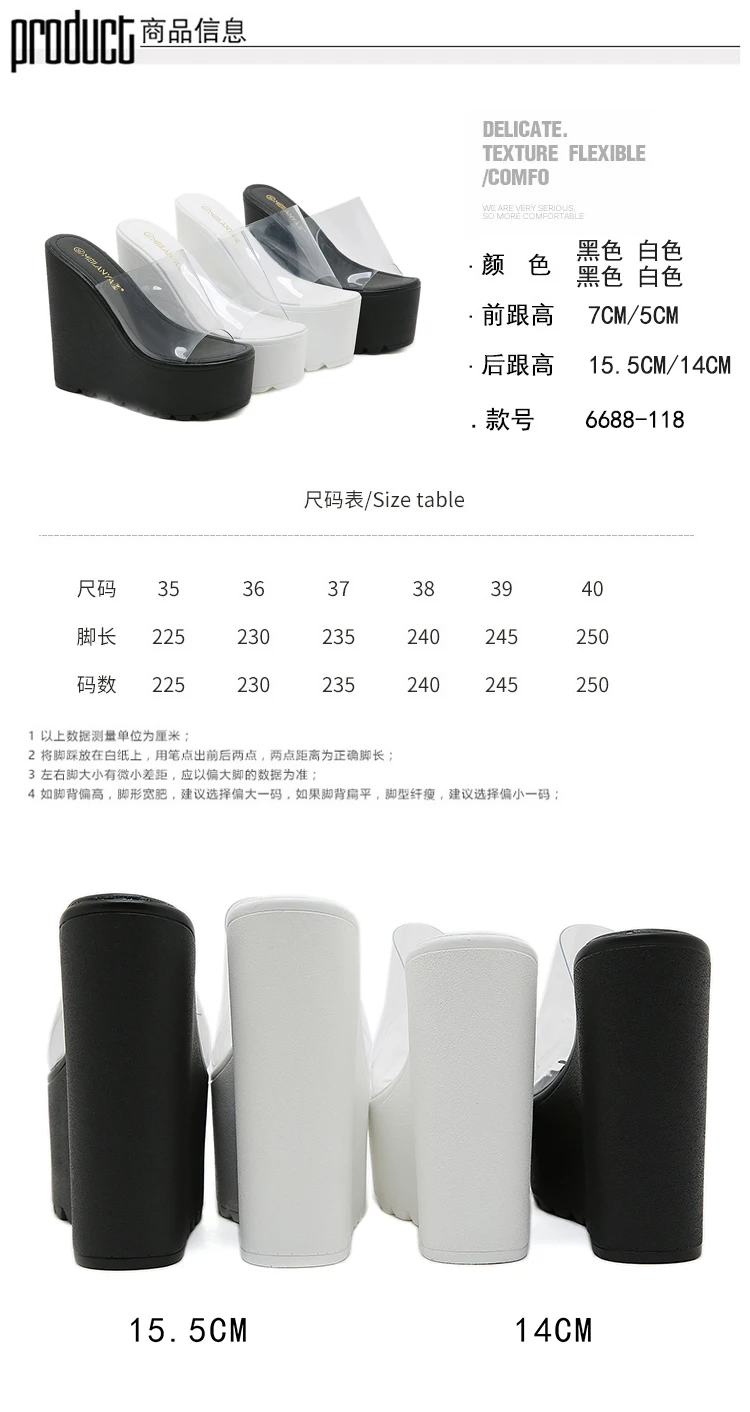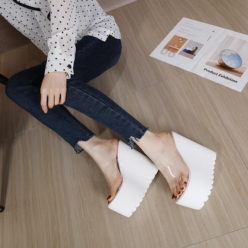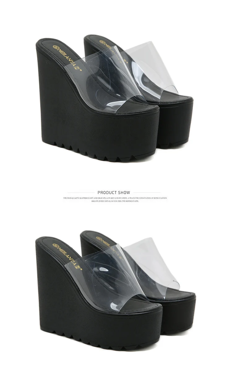 16CM Summer Concise Clear Transparent Peep Toe Platform Wedges Slippers Sandals Women Fashion High Heels Runway shoes