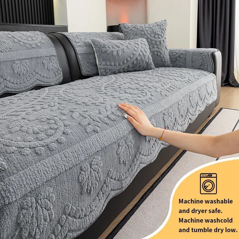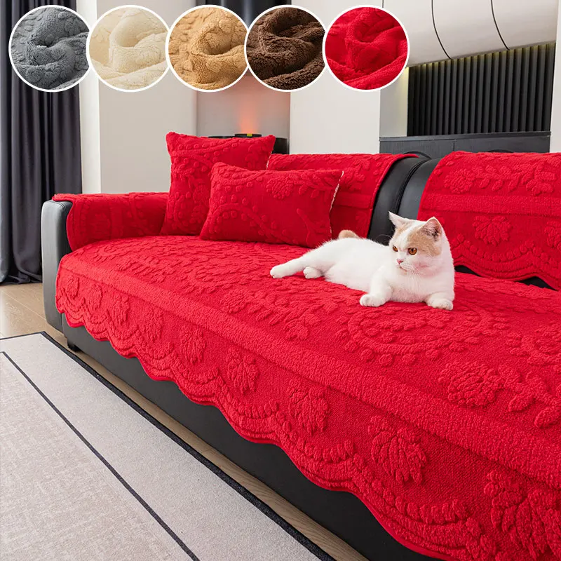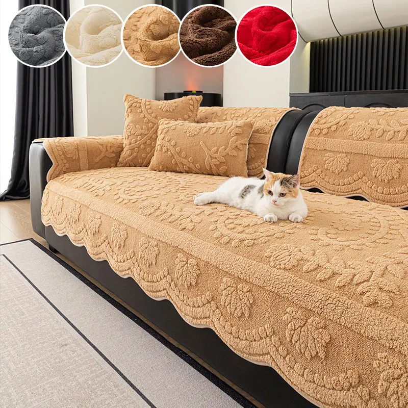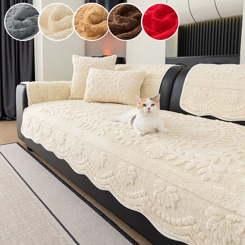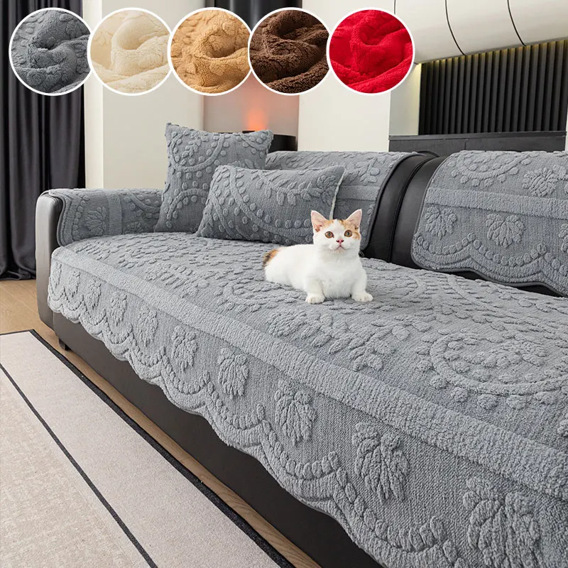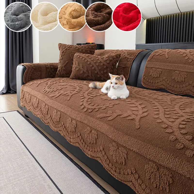 1PC-Modern plush sofa cushion, autumn and winter thick warm sofa cover, simple and high-end cushion, non slip cover cloth