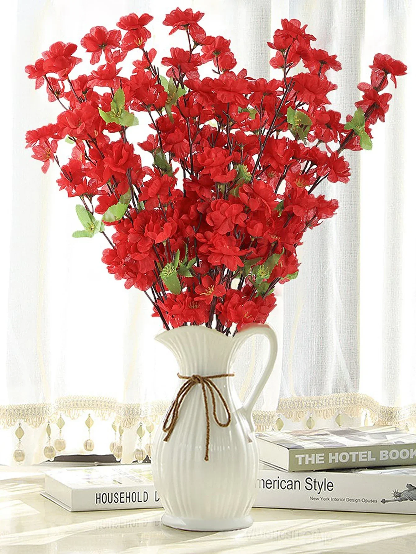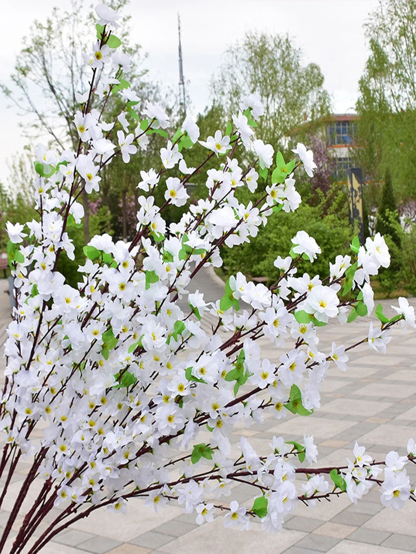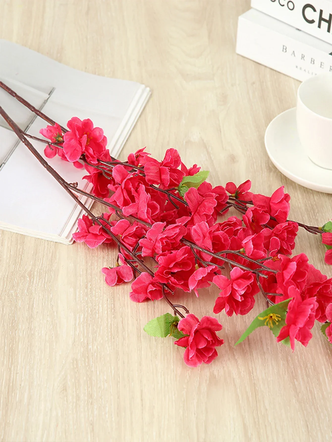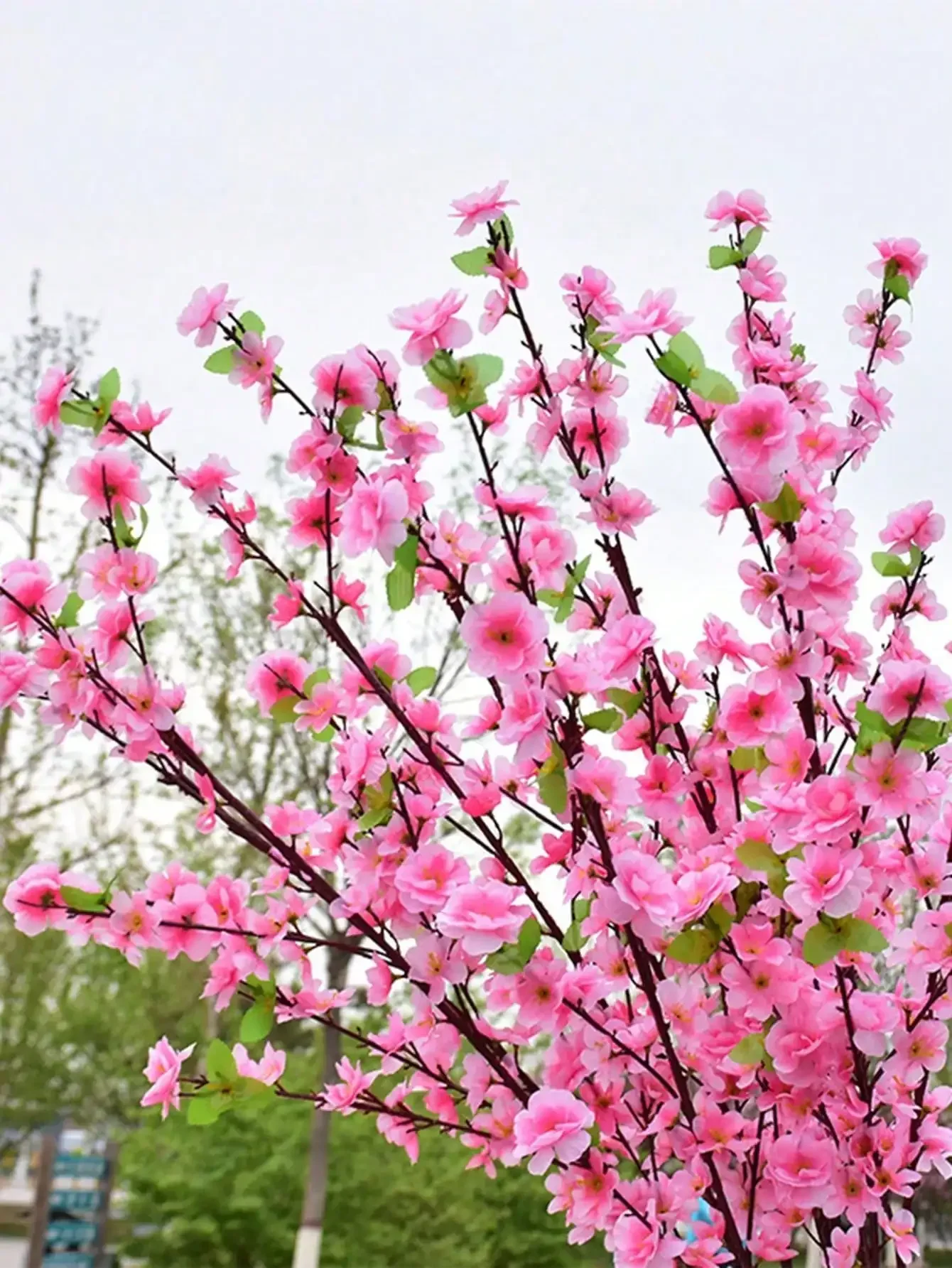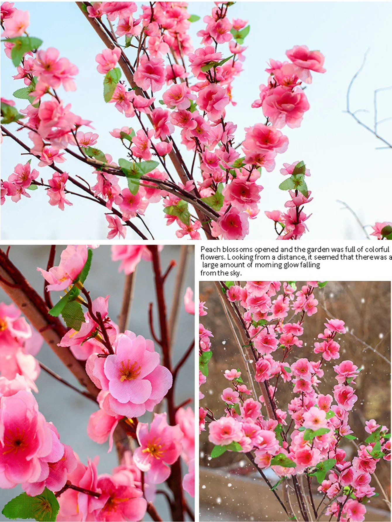 1pc Pink Artificial Peach Blossom Branch With Plastic Stem For Home Wedding Party Landscape DIY Decoration Cherry Blossom Silk Flower Tree Decoration