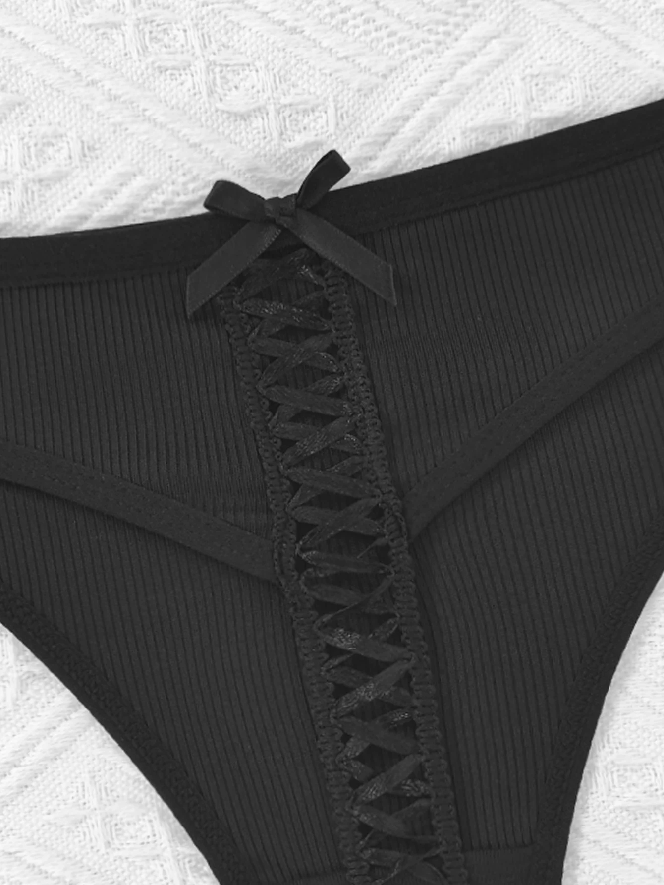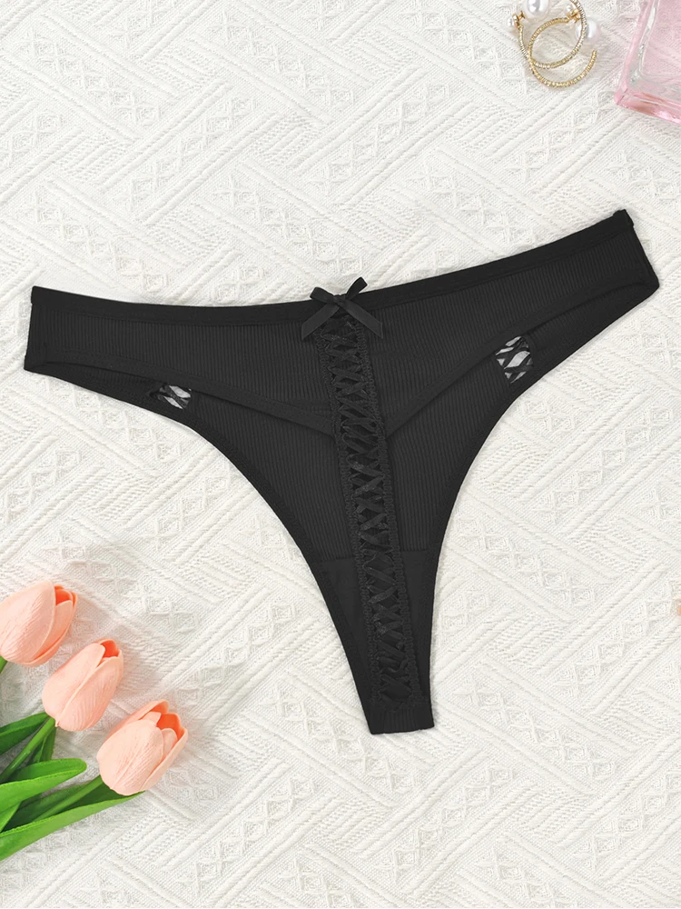 1pcs 2024 Women Low Rise Sexy Thongs Comfortable Bow New Fashion Bandage Female G-string Intimate Lingerie Solid T-back