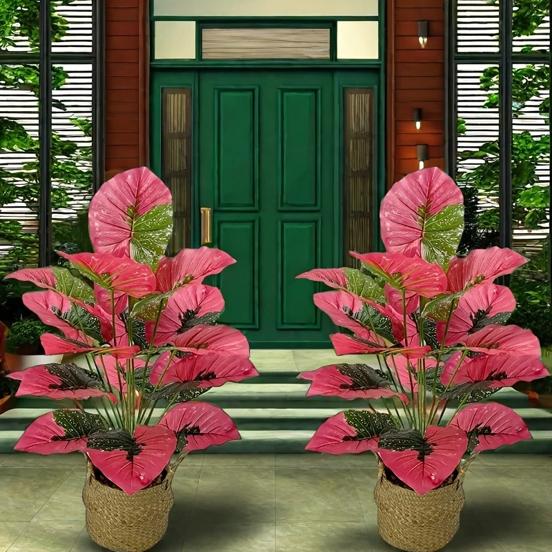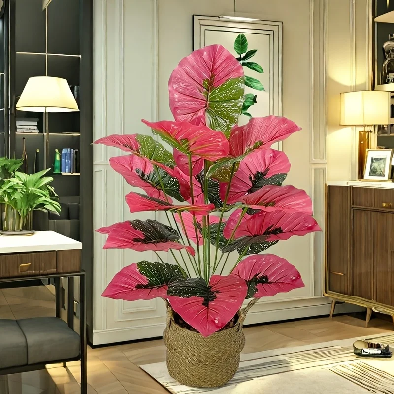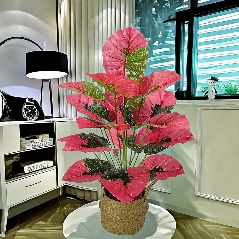 1pcs 60-75CM Artificial Pink Colorful Leaves Purple Water Lily Apple Leaf Ornamental Plants for Home Garden Decoration