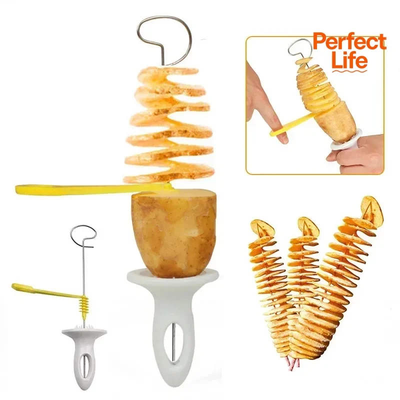 1Set Stainless Steel Plastic Rotate Potato Slicer Twisted Potato Spiral Slice Cutter Creative Vegetable Tool Kitchen Gadgets
