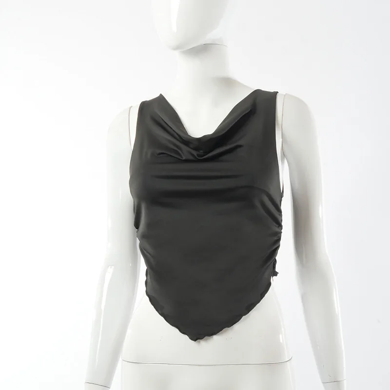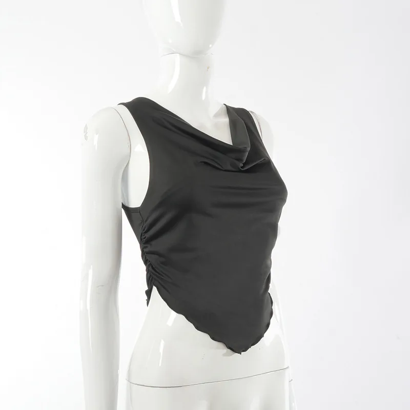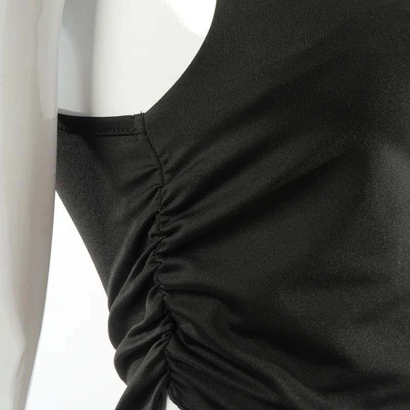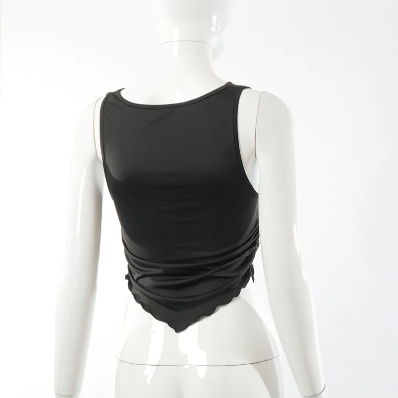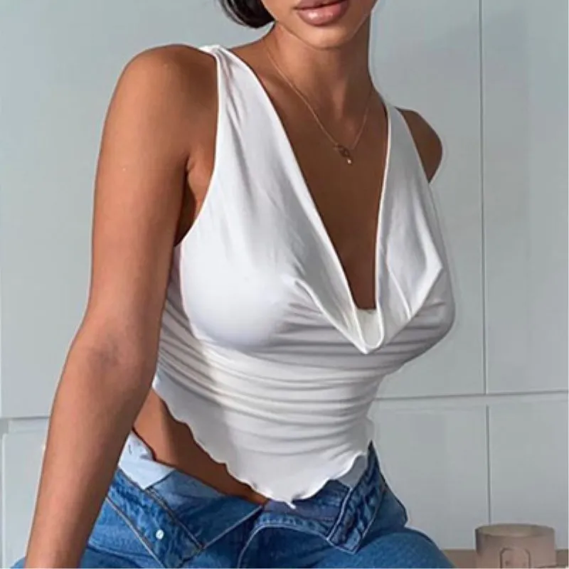 2021 Summer Fashion Outfits Ruffles Ruched Sexy Tank Tops For Women White Slim Elastic Top Cropped Club Party Casual Tops