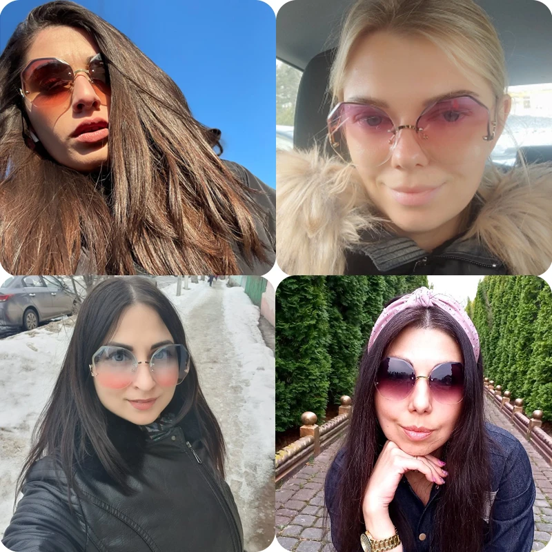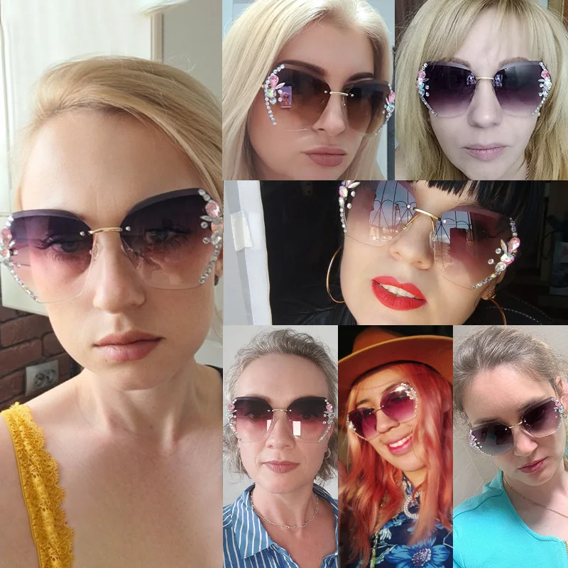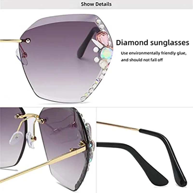 2023 Luxury Brand Design Vintage Rimless Rhinestone Sunglasses Women Men Fashion Gradient Lens Sun Glasses Shades for Female