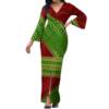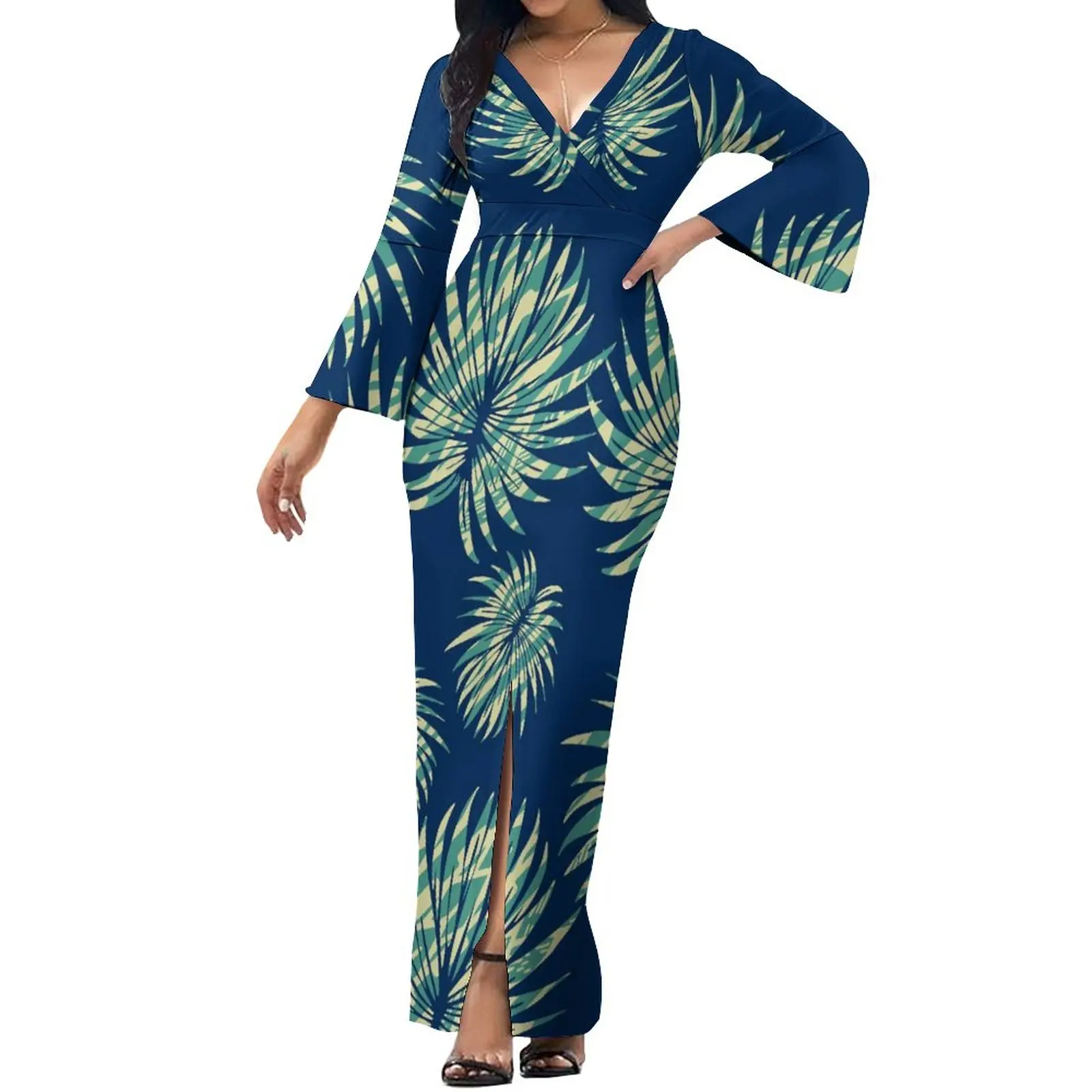 2023 Polynesian Women’s Dress Elegant V-neck Maxi Dress with Custom Patterned Temperament Party Summer Soft Fabric