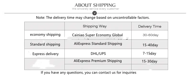 Packages from our warehouse in China will be shipped by ePacket or EMS depending on the weight and size of the product. Packages shipped from our US warehouse are shipped through USPS.