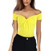 2024 euro-n spring and summer lady pure color V-neck elegant beach party slim T-shirt