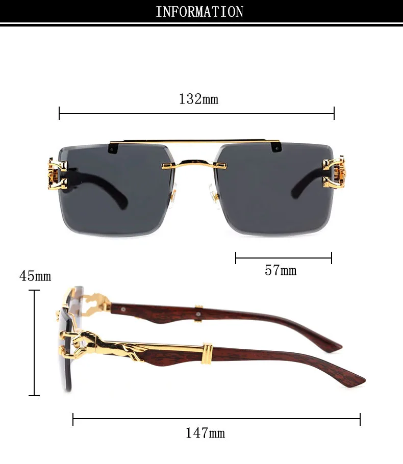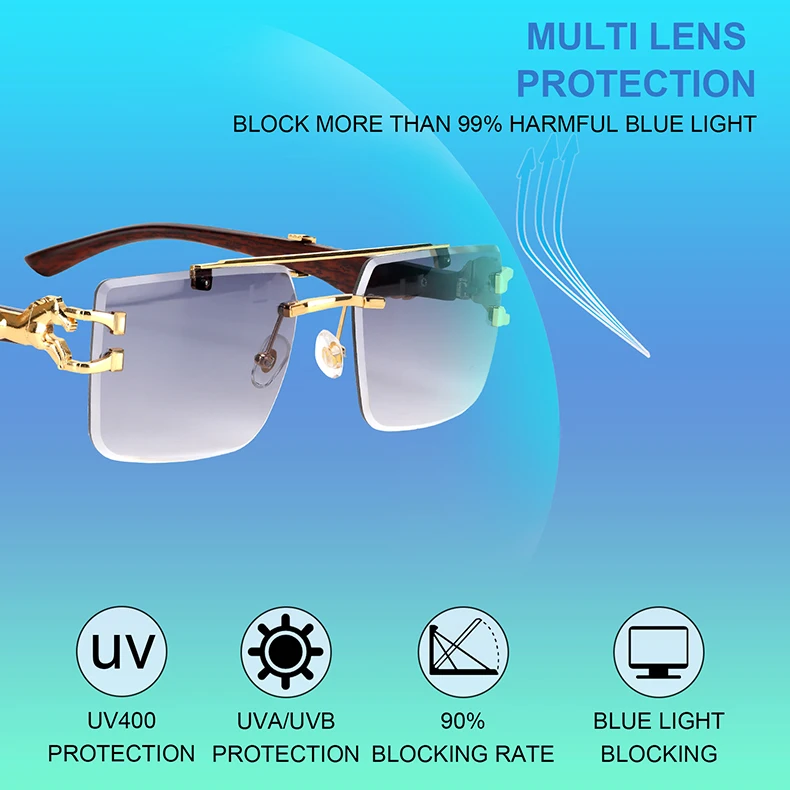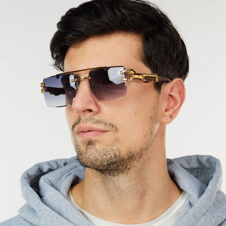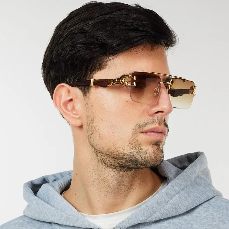 2024 Luxury Sunglasses Women Square Rimless Sunglasses For Men Vintage Fashion Glasses Gafas De Sol Hombre Lunette Soleil Femme