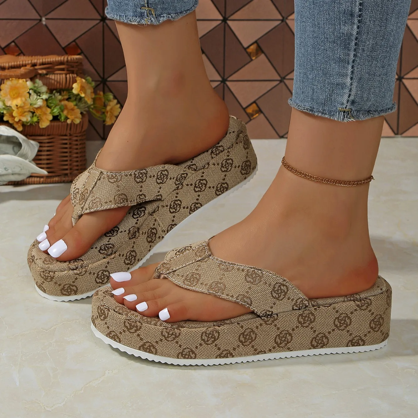2024 Summer New Slippers Women Fashion Platform Thick Sole Solid Color Slippers Party Party Beach Sandals Women Slides Women