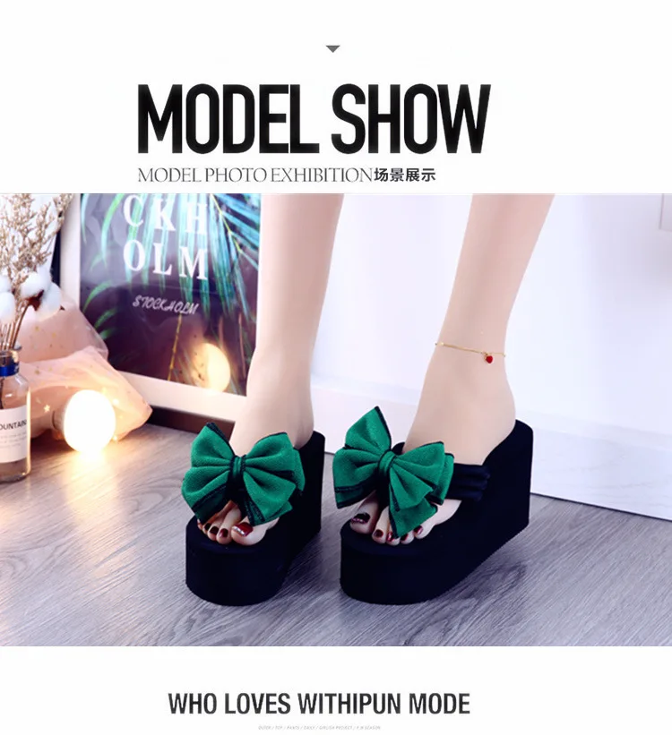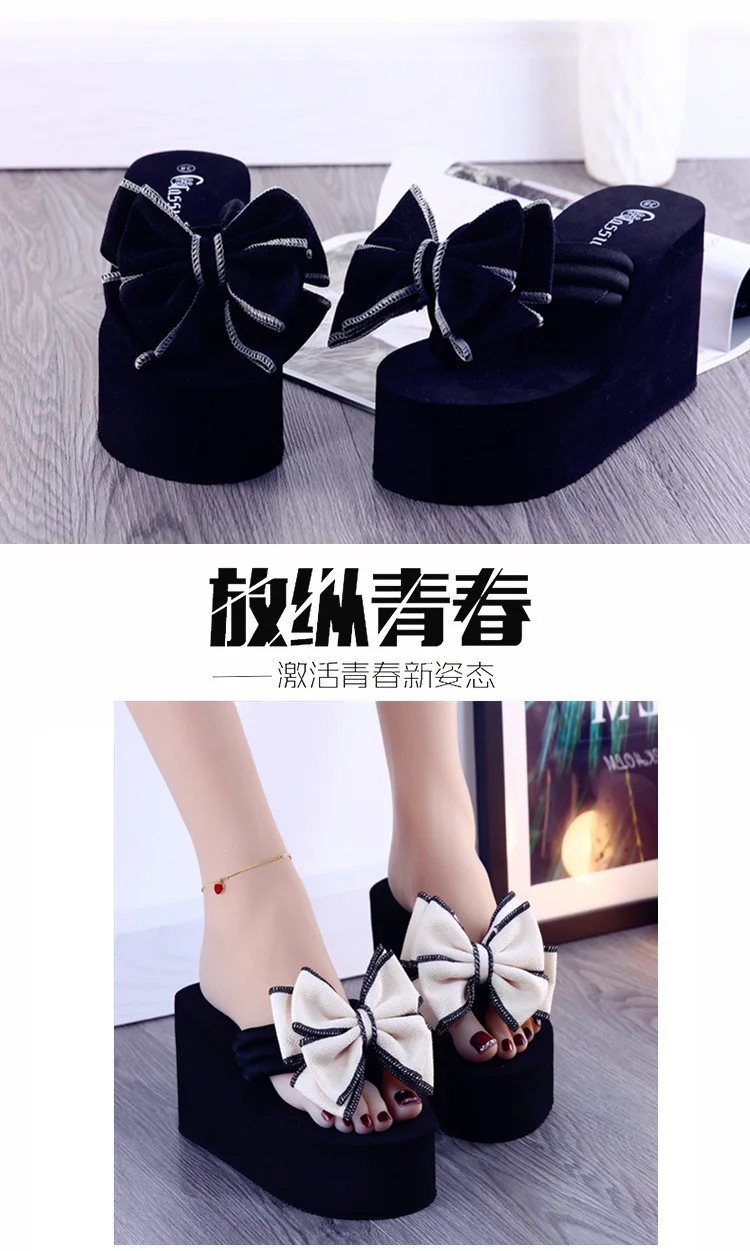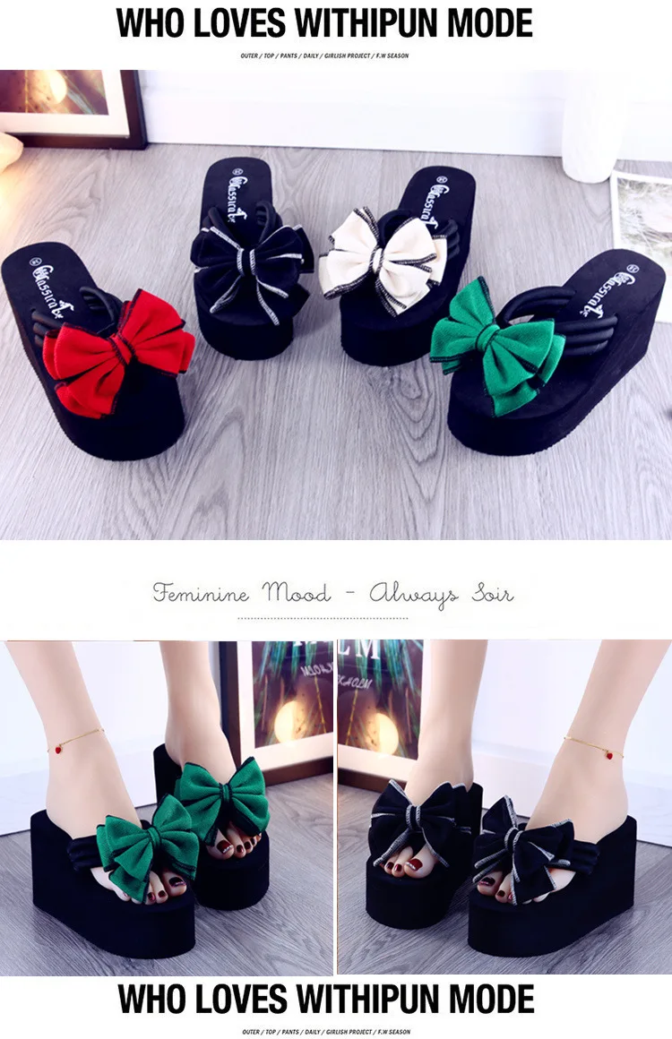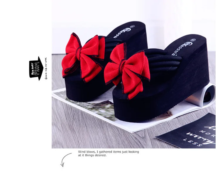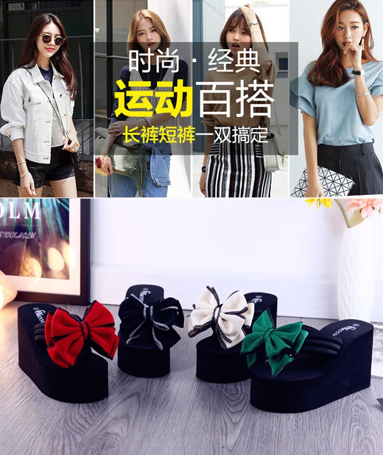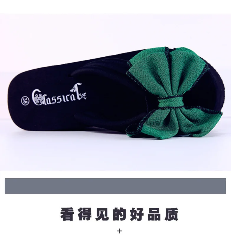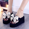 2025 new daily wedges platform slippers woman bow flip-flops lovely butterfly-knot slides female vacation beach flipflops