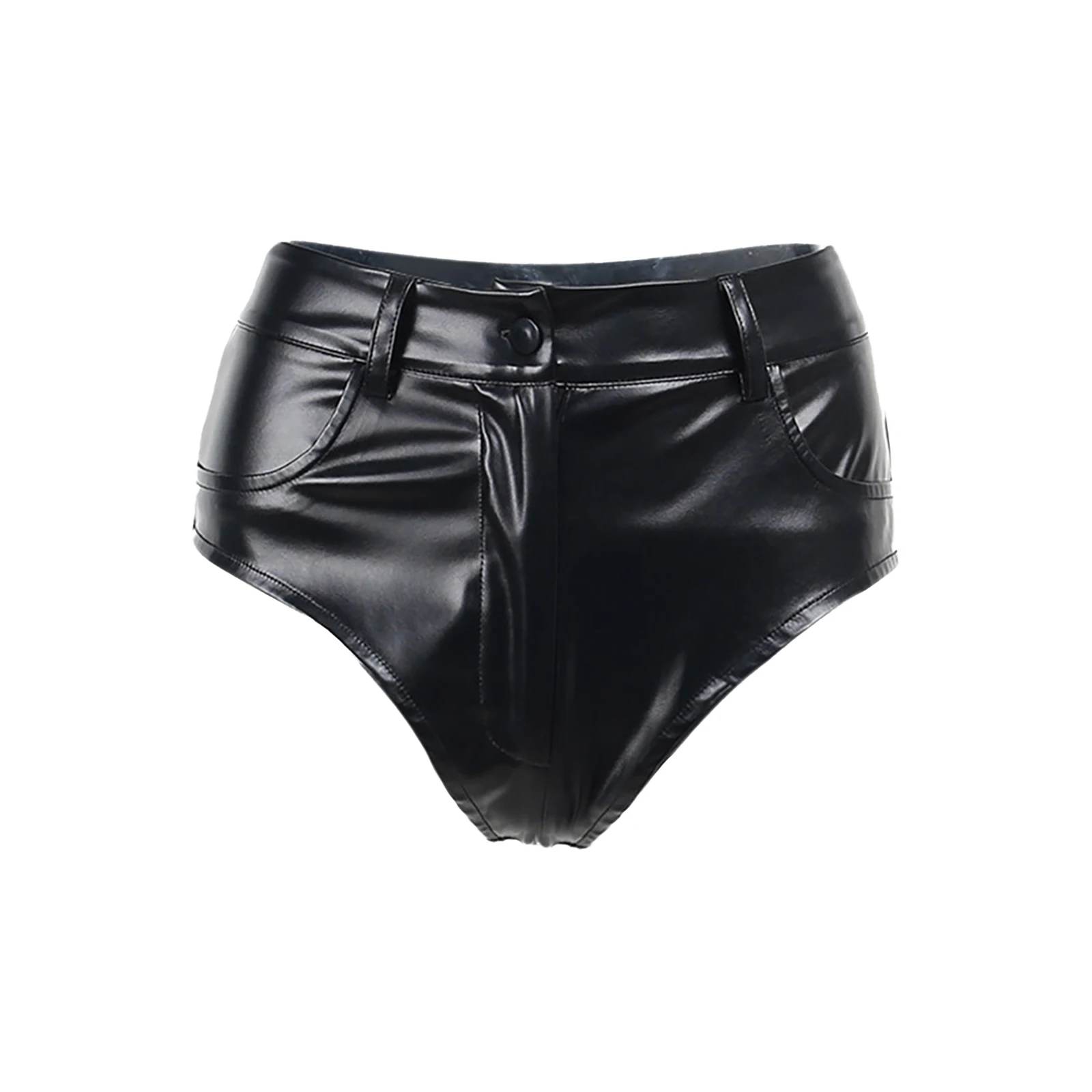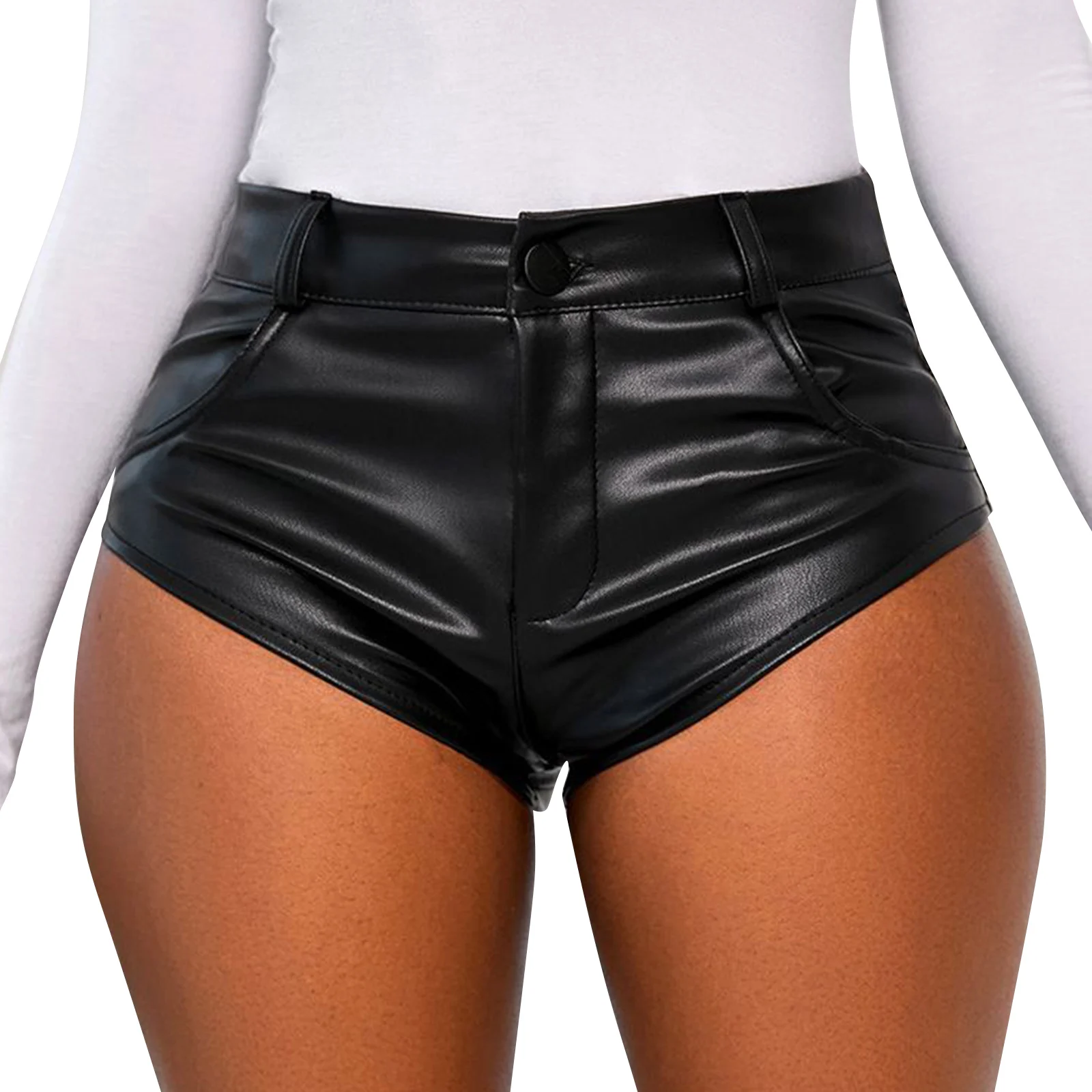 Outdoor Sports Women’s Shorts Hot Pants PU Faux Leather Black Mid Waist Fashion Casual Weekend Micro Elastic Short Comfort Plain