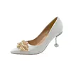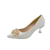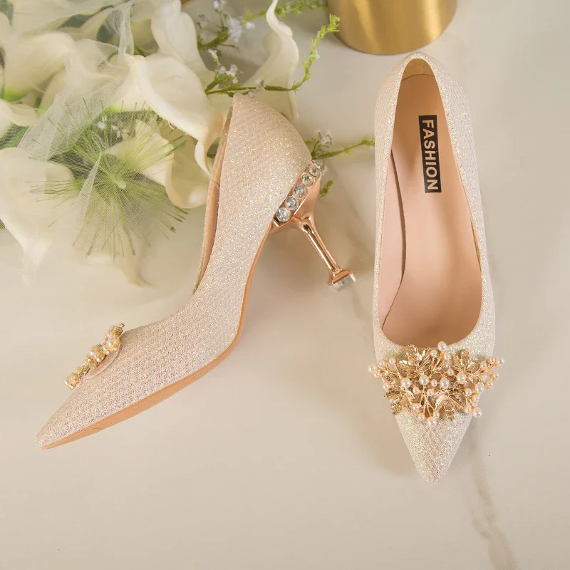 2025 New Wedding Bride Rhinestone Gold Fashion High Heels Metal Buckle Sexy Work Shoes 7cm Large Size Female Shoe High Heel