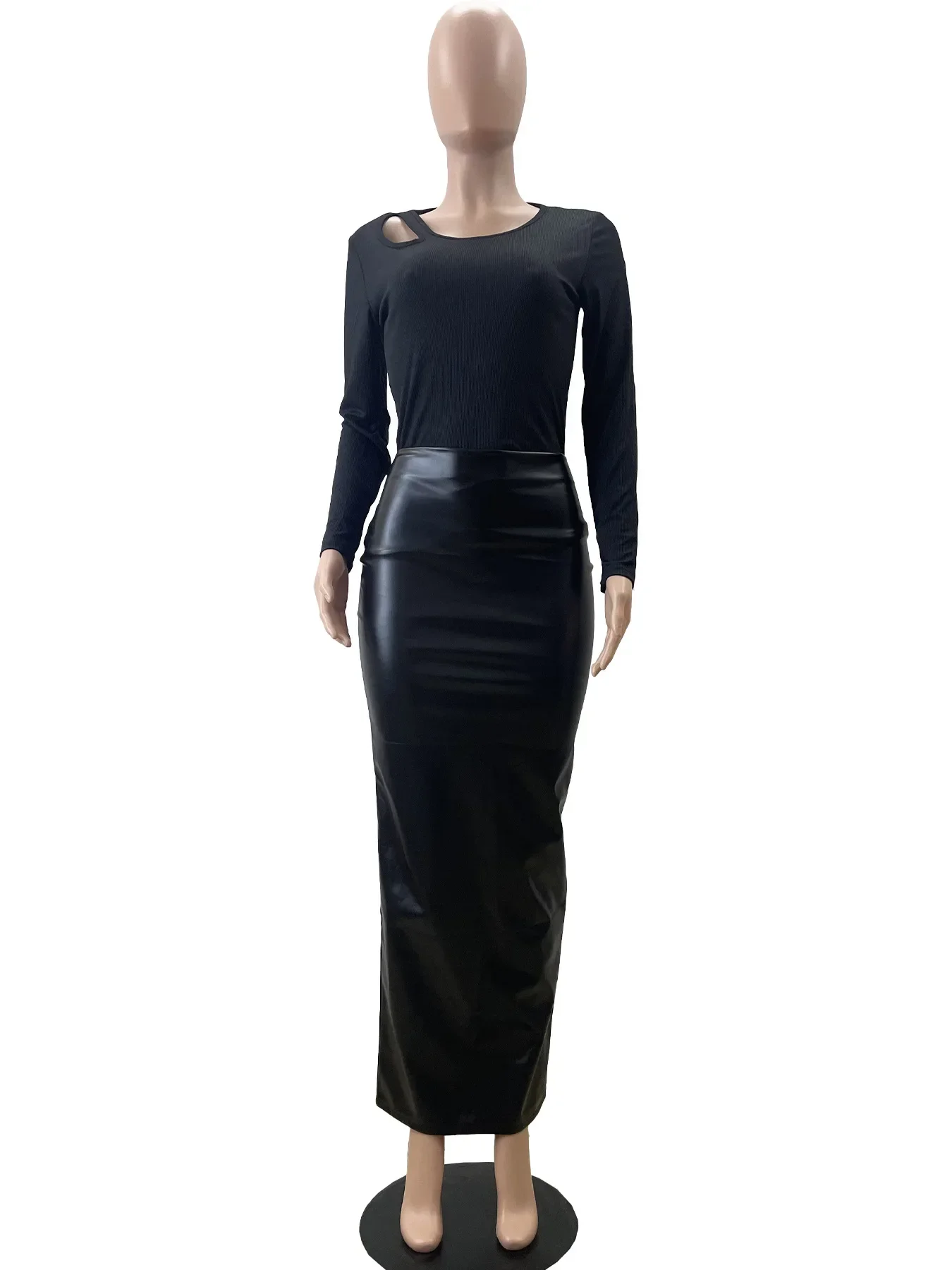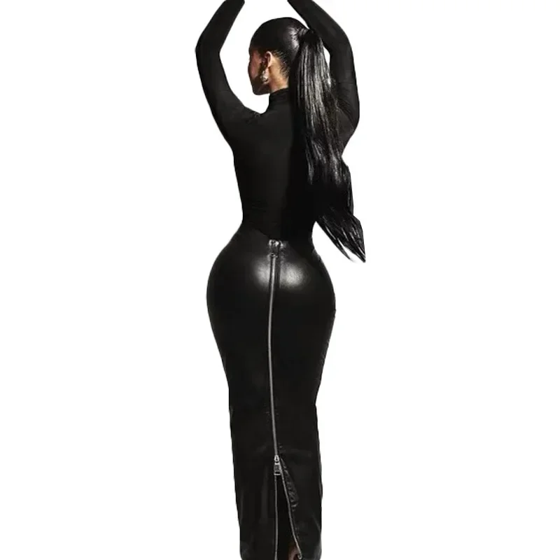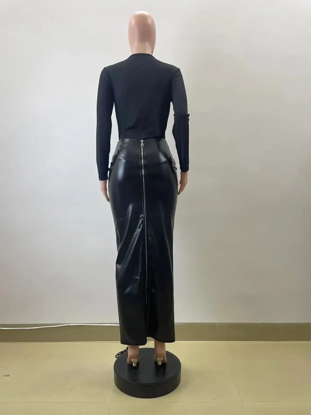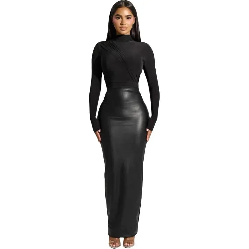 2025 PU Skirt Midi Fashion Sexy Women High Waist Elastic Long Skirt Lady Casual Party PU Skirt