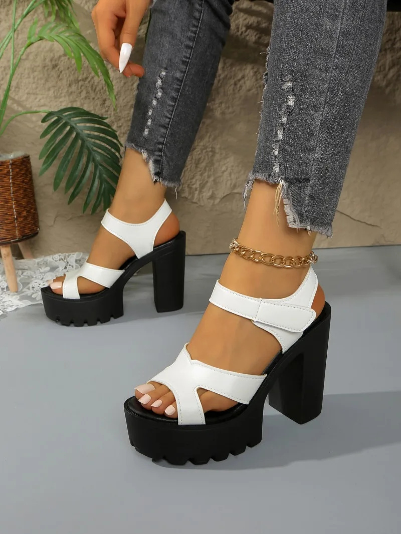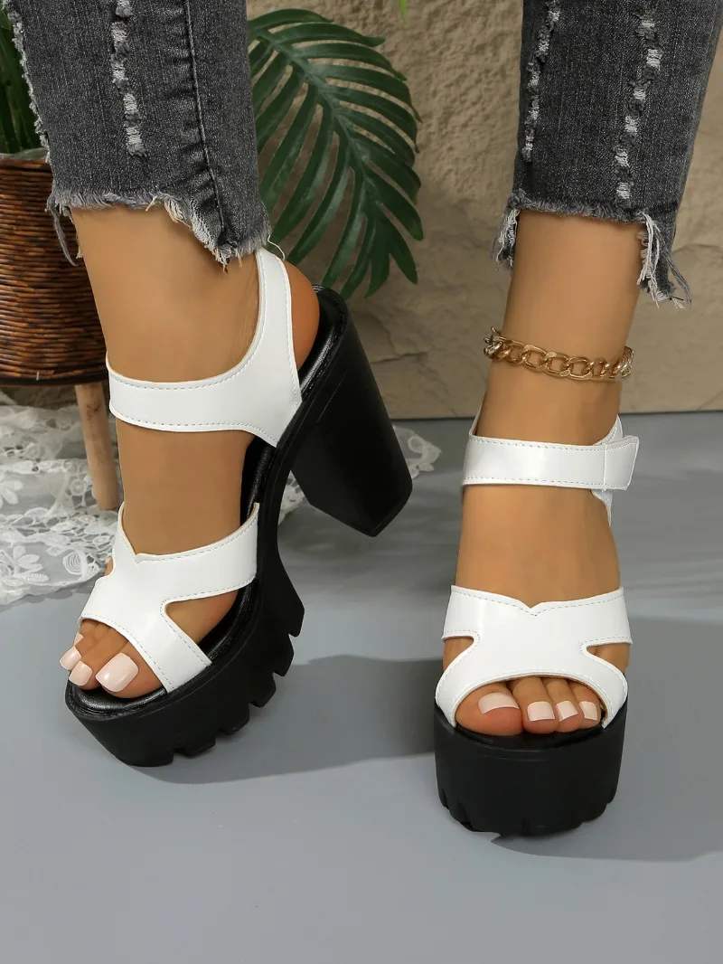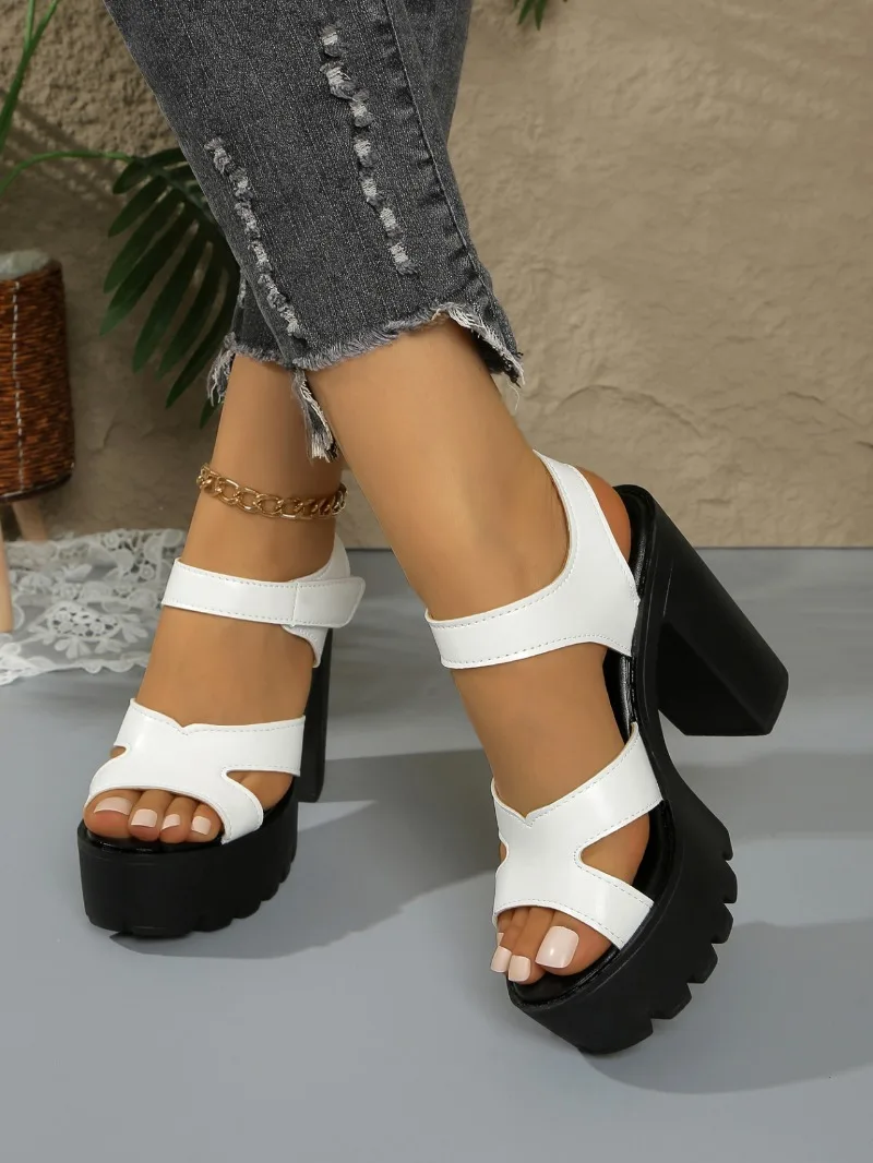 2025 Summer Block High Heels Wedding Shoes Bride Platform Sandals Women’s Fashionable Thick Bottom Sandals for Office Model