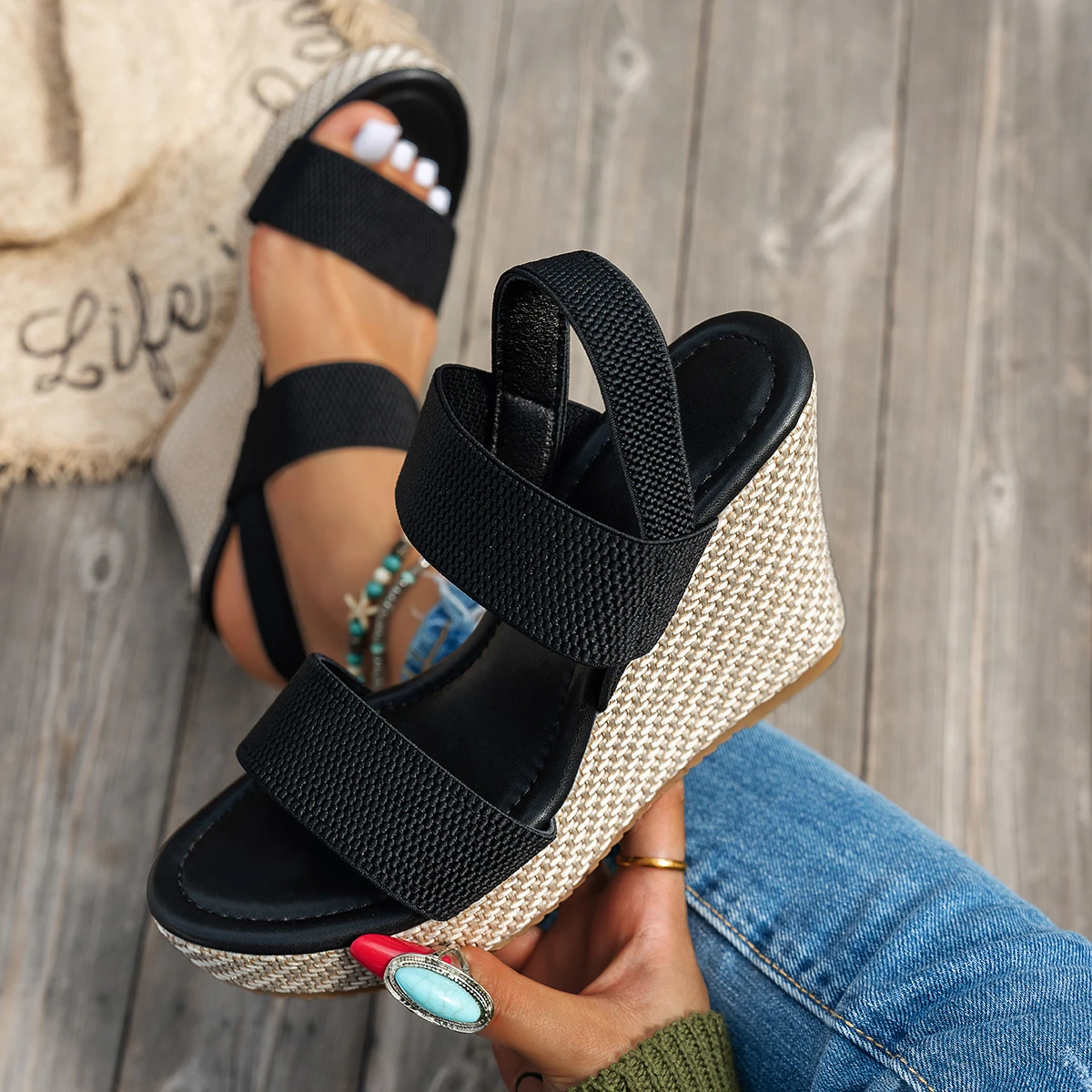 2025 Summer Women Wedges Sandals Slip on High Heels Sandals Plus Size Platform Shoes Woman Fashion Outdoor Designer Sandals