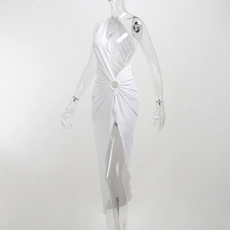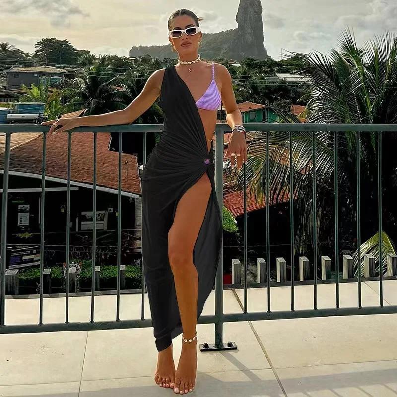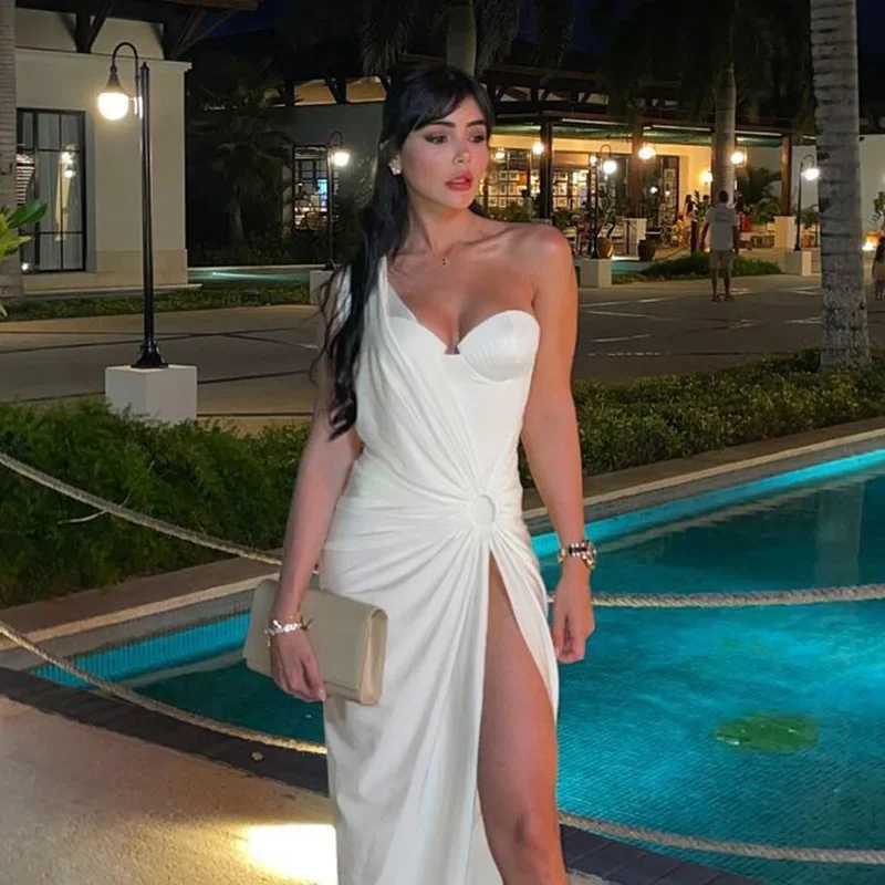 2026 New Fashio Women’s Irregular Dress White High Slit Beach Cover Up Skirt Summer Vacation Outfit Y2k Clothing