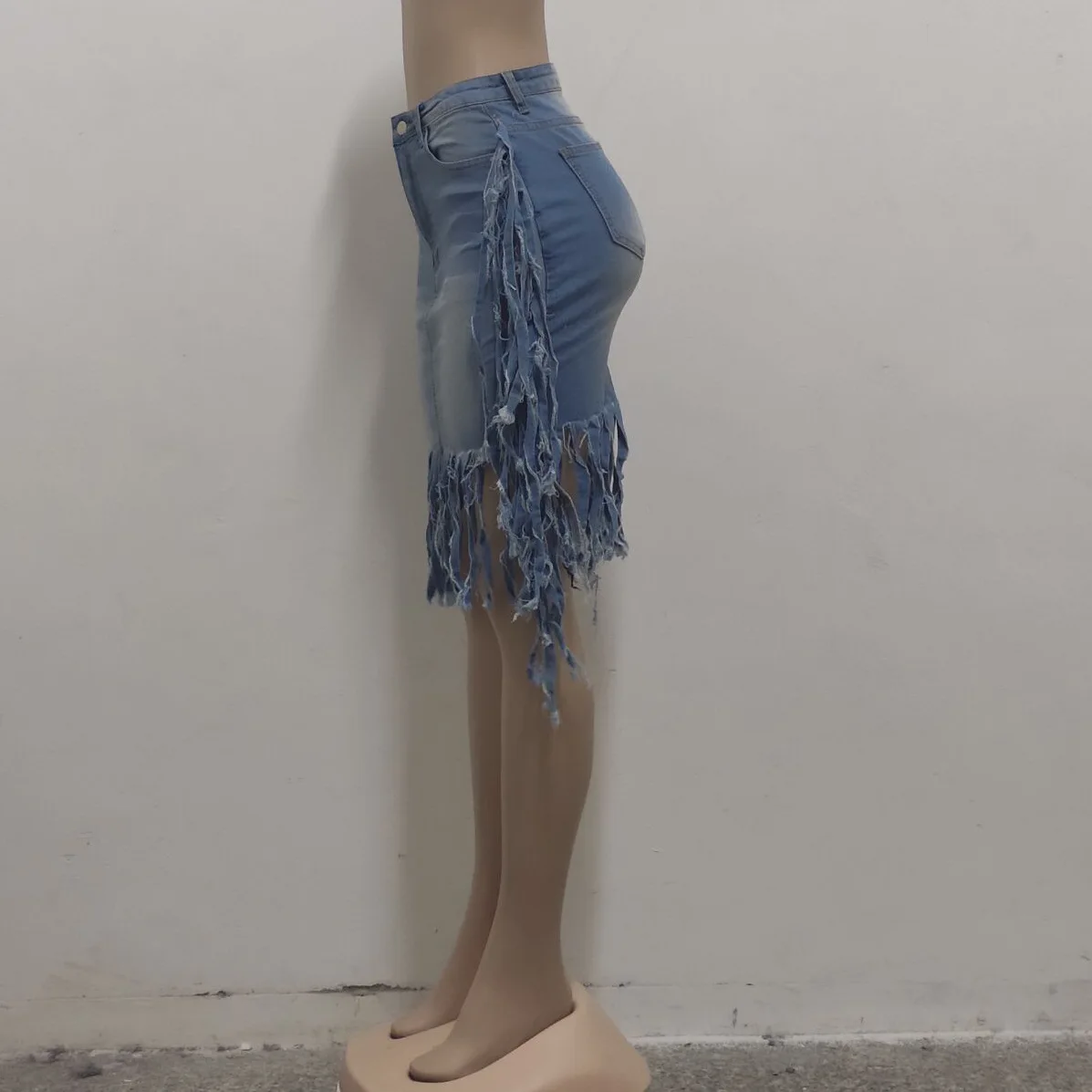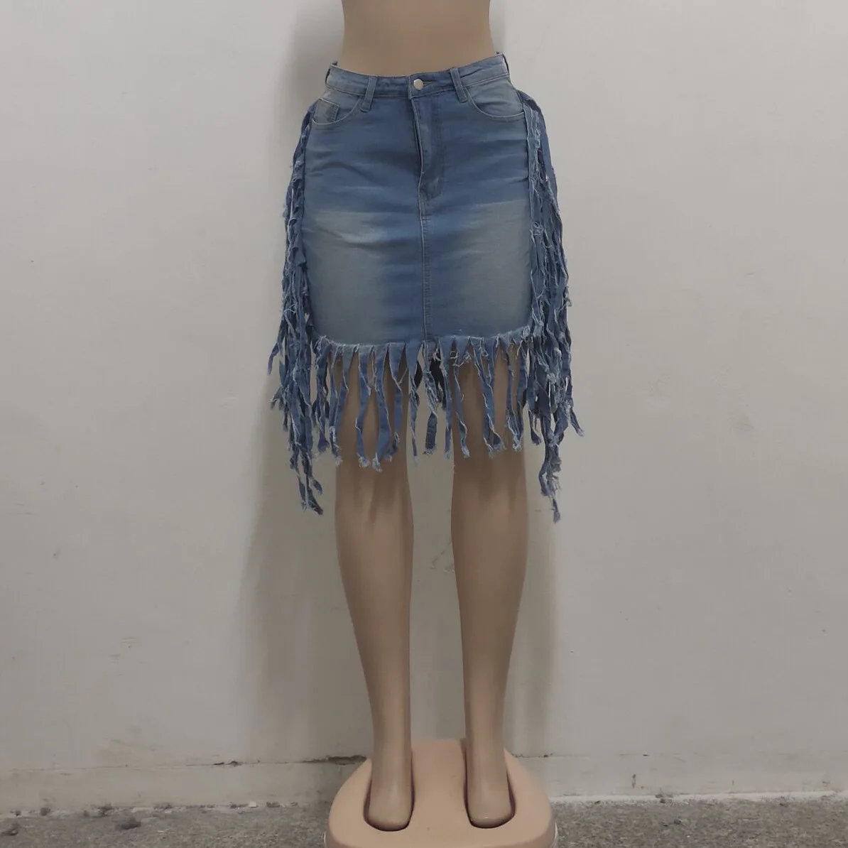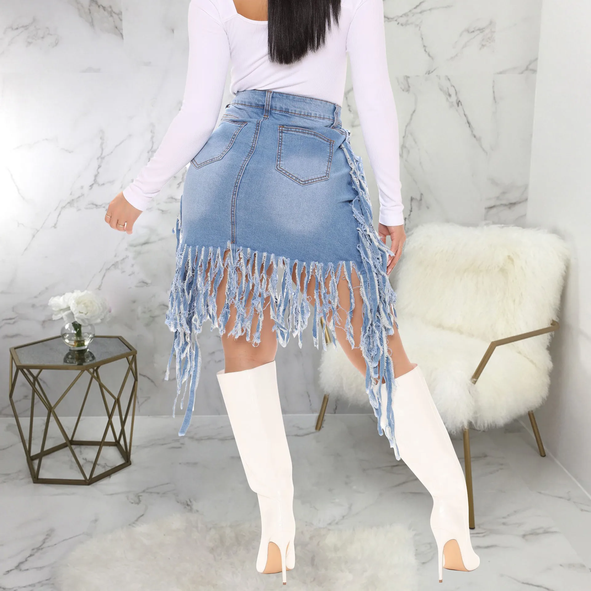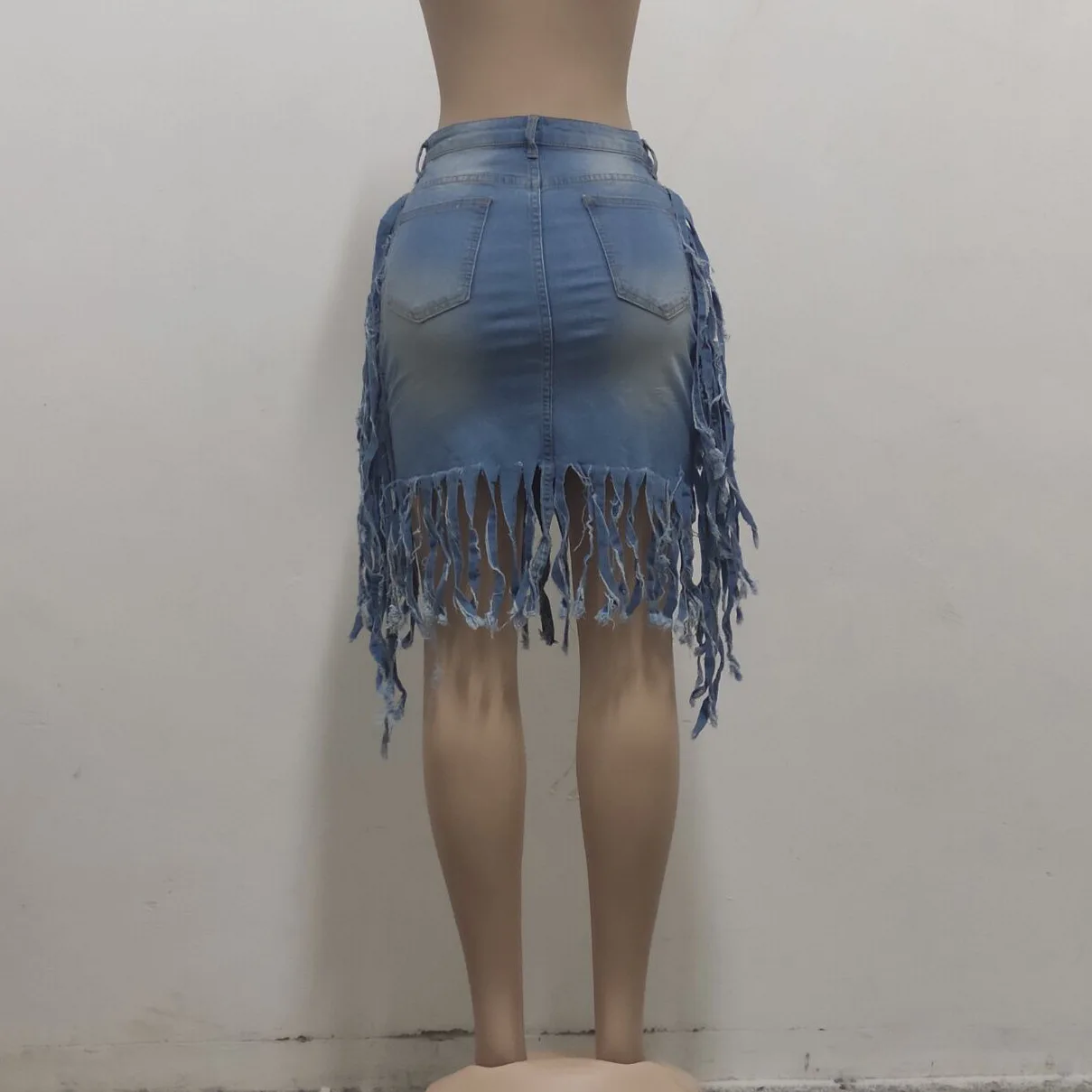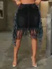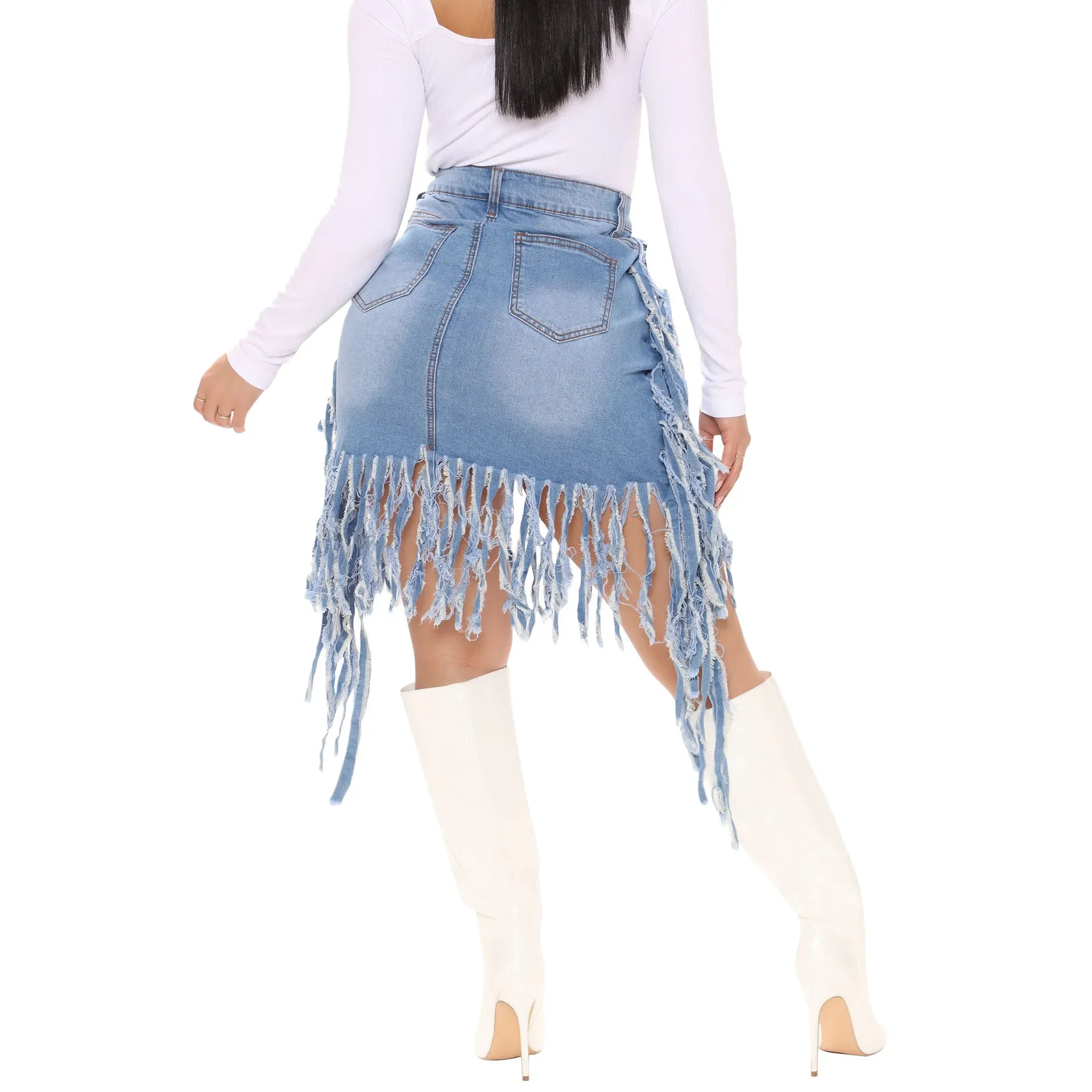 2026 New Fashion Vintage Women’s Sexy Washed Denim Fringed High Waist Tassel Denim Skirts