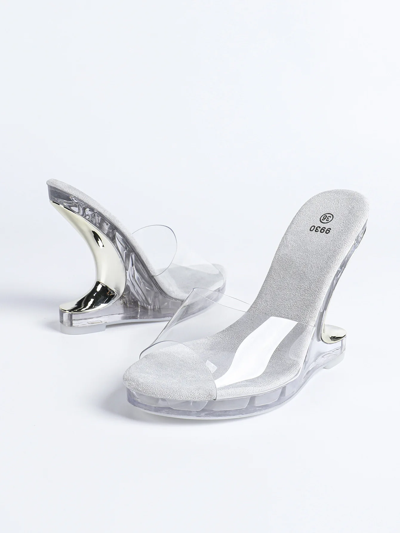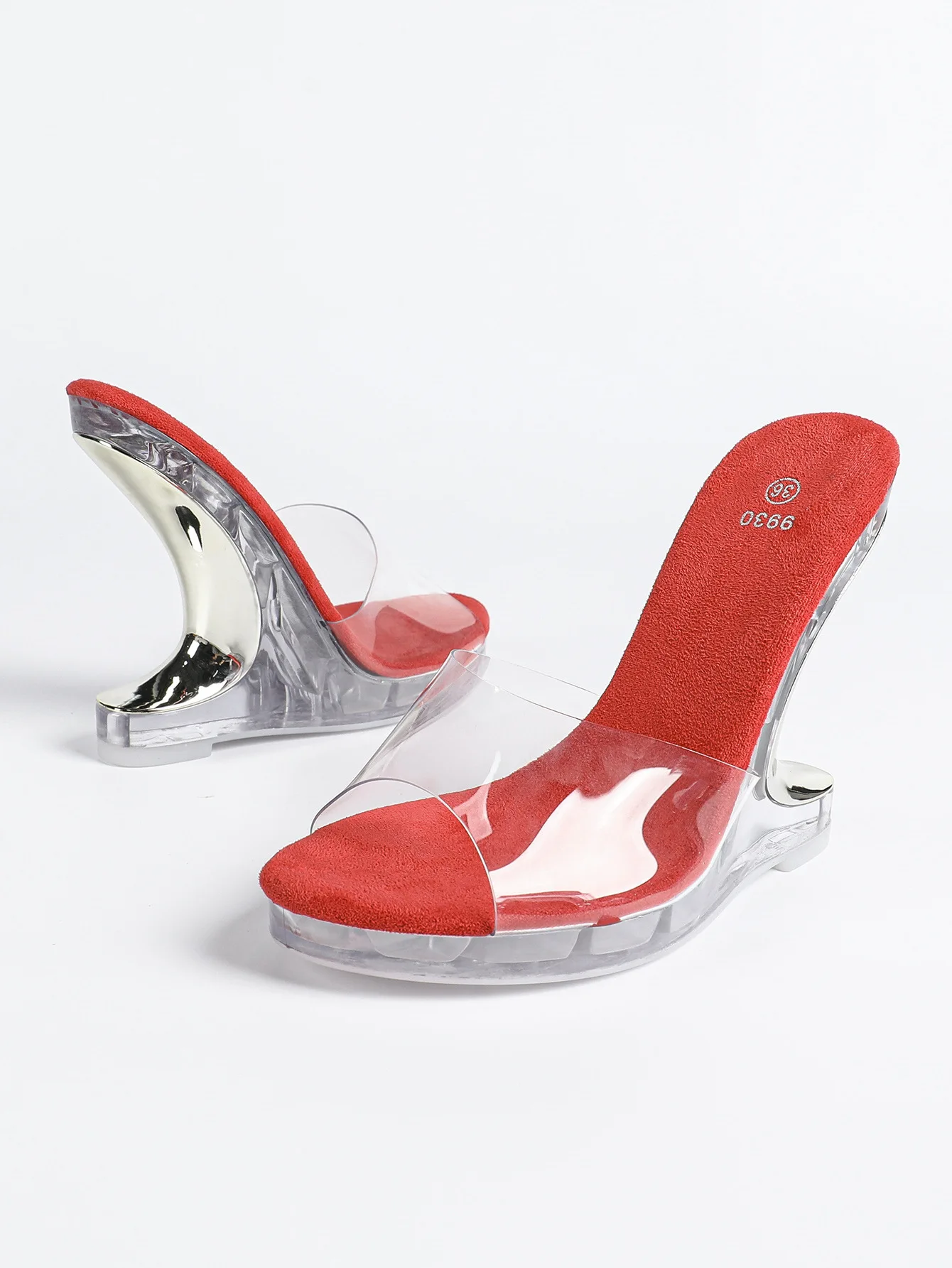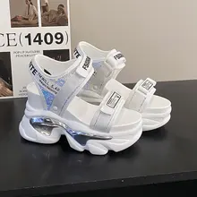 2026 Summer Women’s PVC Jelly Slippers and Sandals 11CM Wedge High Heels Platform Woman Transparent Perspex Clear Crystal Shoes