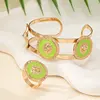 2PCS Jewelry Set Lion Head Stainless Steel Bracelet Bangle for Women Gold Plated Smooth Ring Punk Gifts