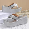 35-43 Plus Size Shoes for Women 2026 Summer Fashion Platform Wedge Comfortable Round Toe Sequin Sandals Women Slippers