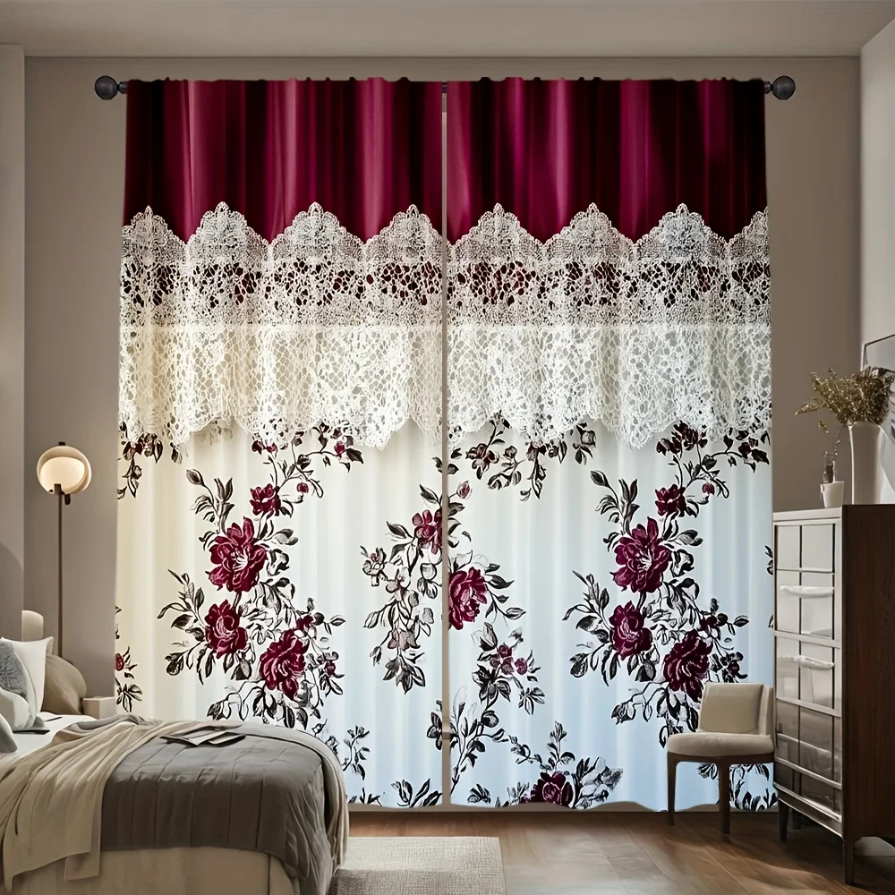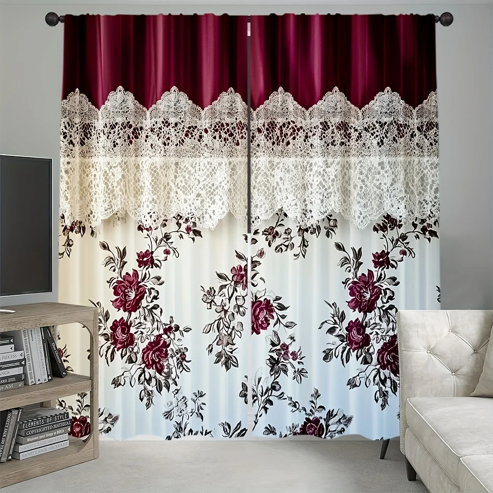3D flower pattern printed curtains, Christmas decorations, bedroom and living room decoration, home decoration, room decoration