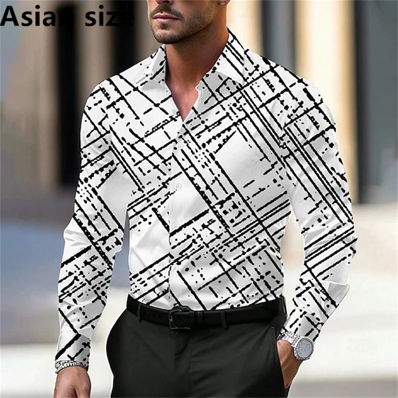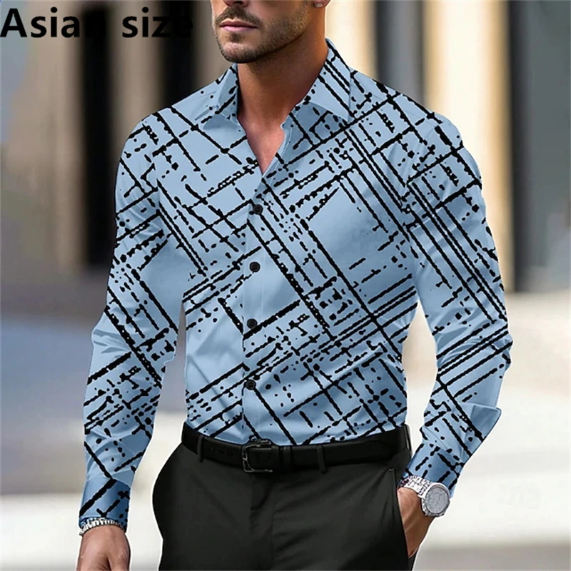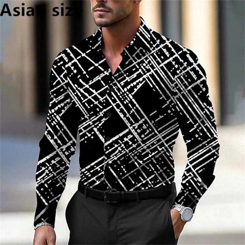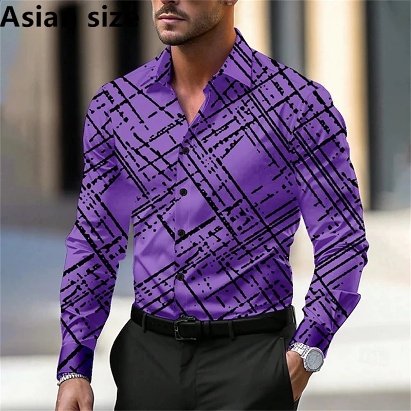3D Print Simple Geometry Pattern Hawaiian Shirts For Men Colorful Block Aloha Shirts Casual Loose Long Sleeve Unisex Blouses