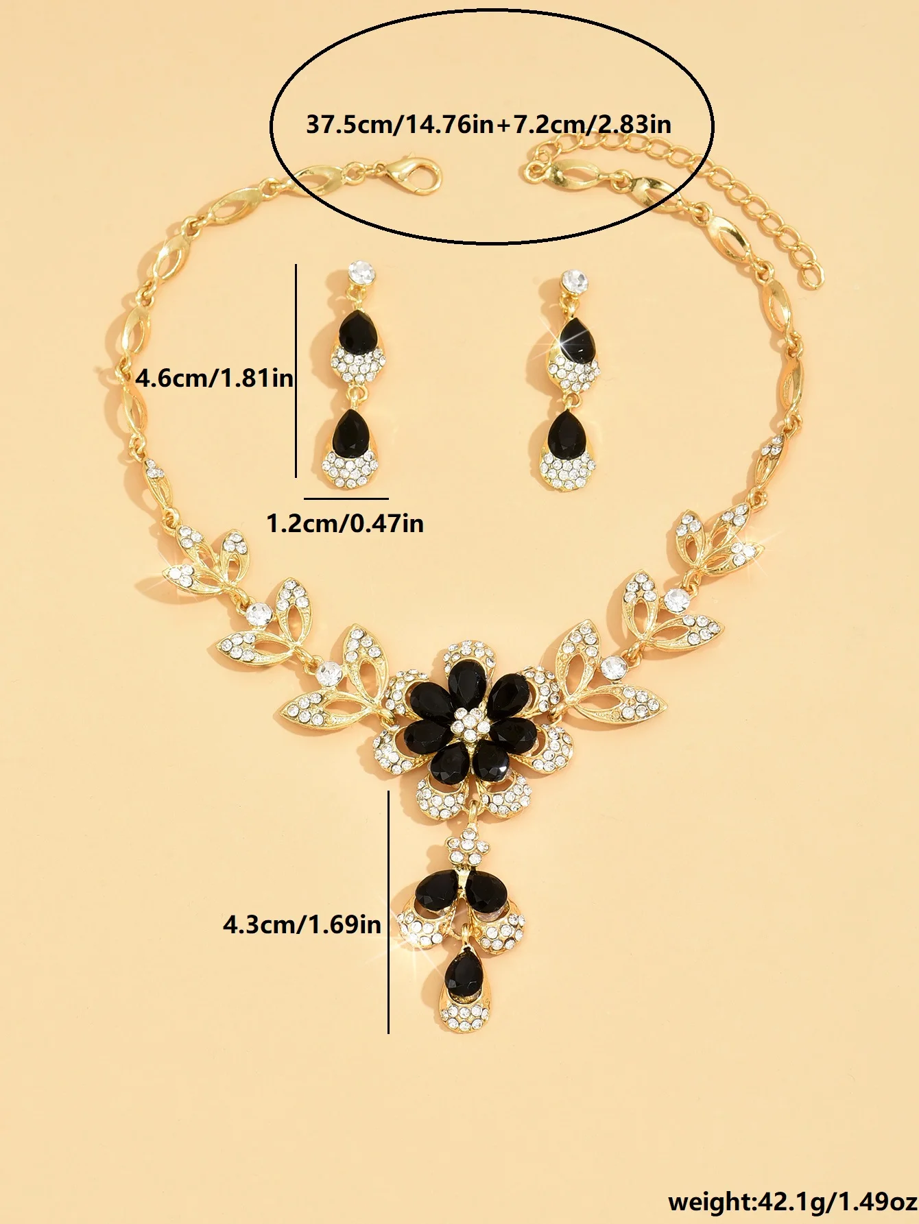 3PC Women’s Fashion Trend Black Gold Flower Necklace Earrings Jewelry Set Wedding Banquet Party Festival Gift