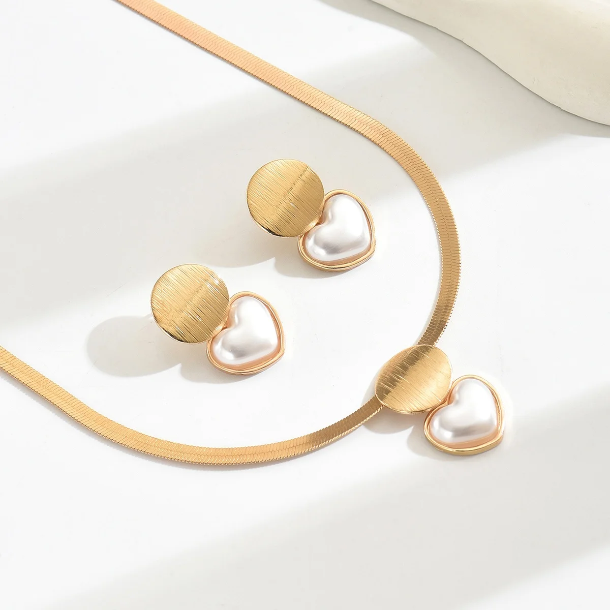3PCS Elegant Golden Jewelry Set – Chic Necklace & Matching Earrings with Heart & Geometric Pendants, Ideal for Daily Wear