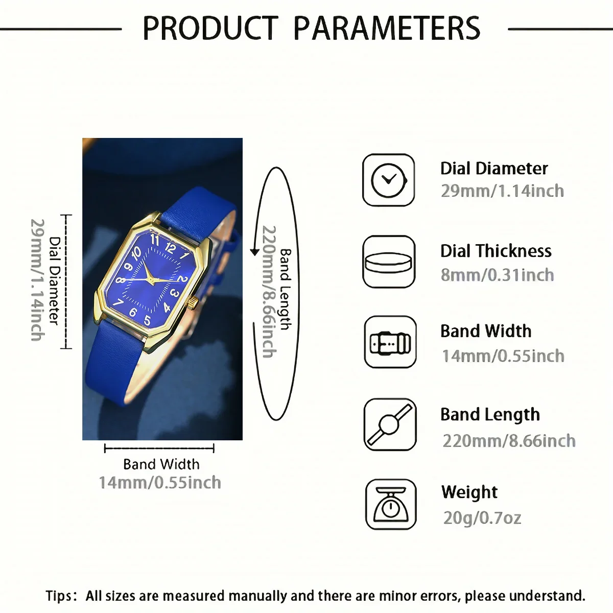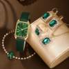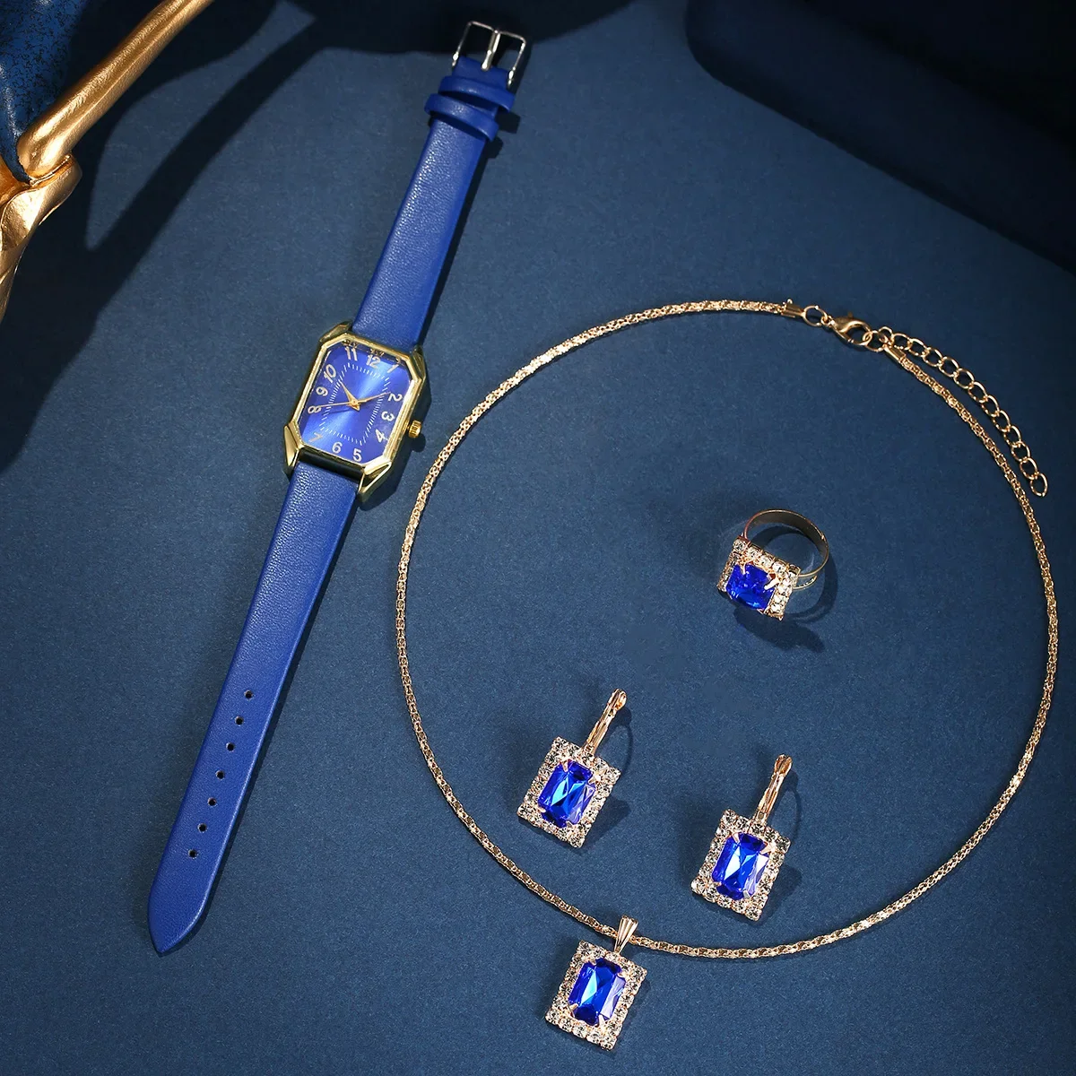 5/4/1PC Square Women Watches Set Leather Strap Ladies Quartz Wristwatch Ring Necklace Earrings Bracelet Jewelry Set Gift (No Box