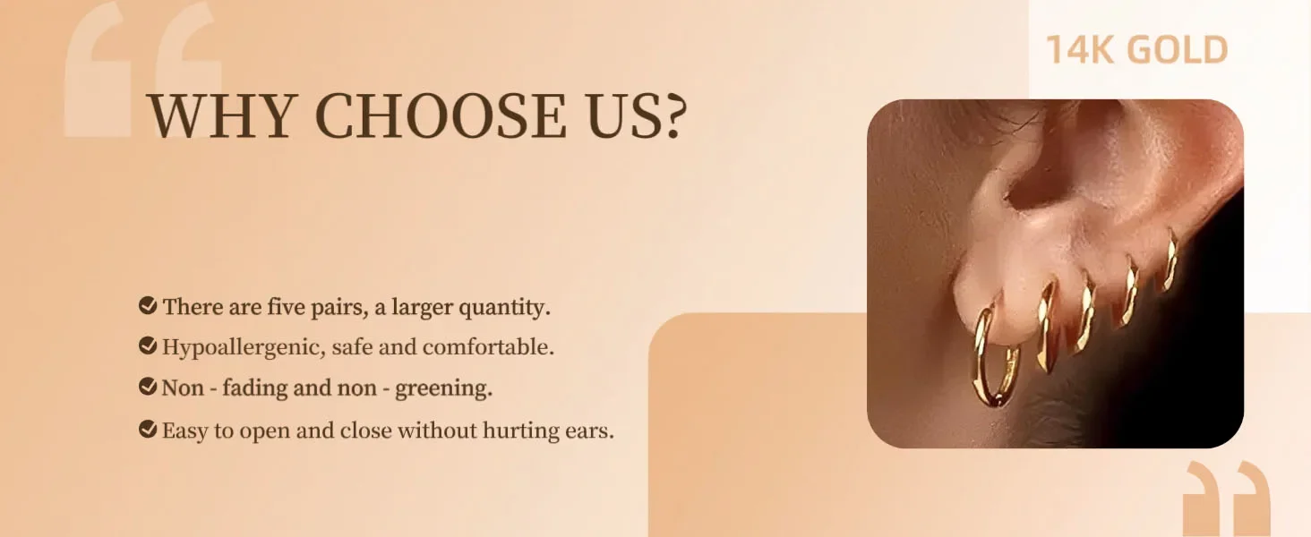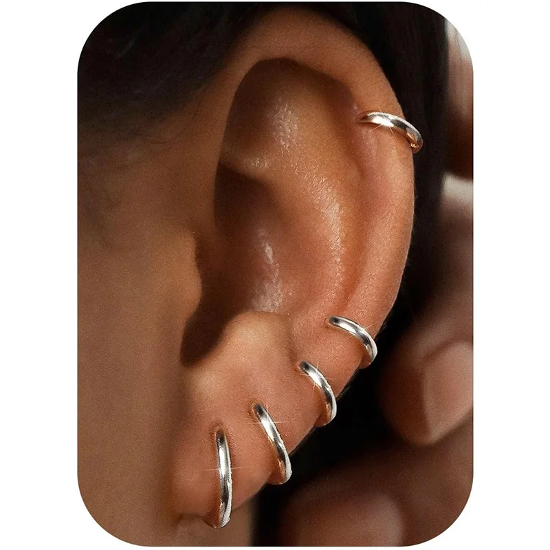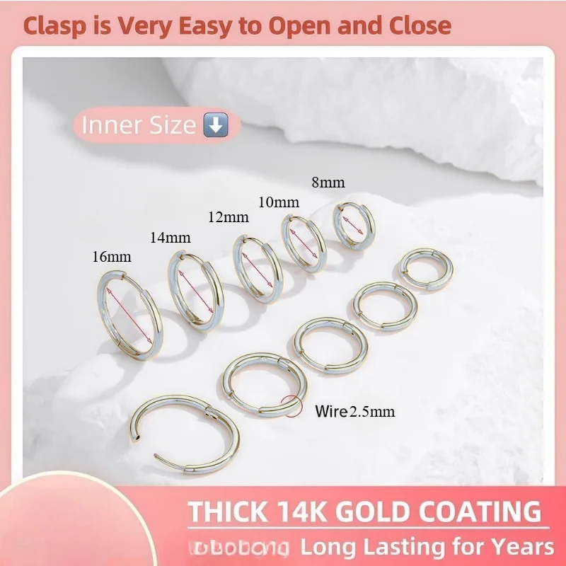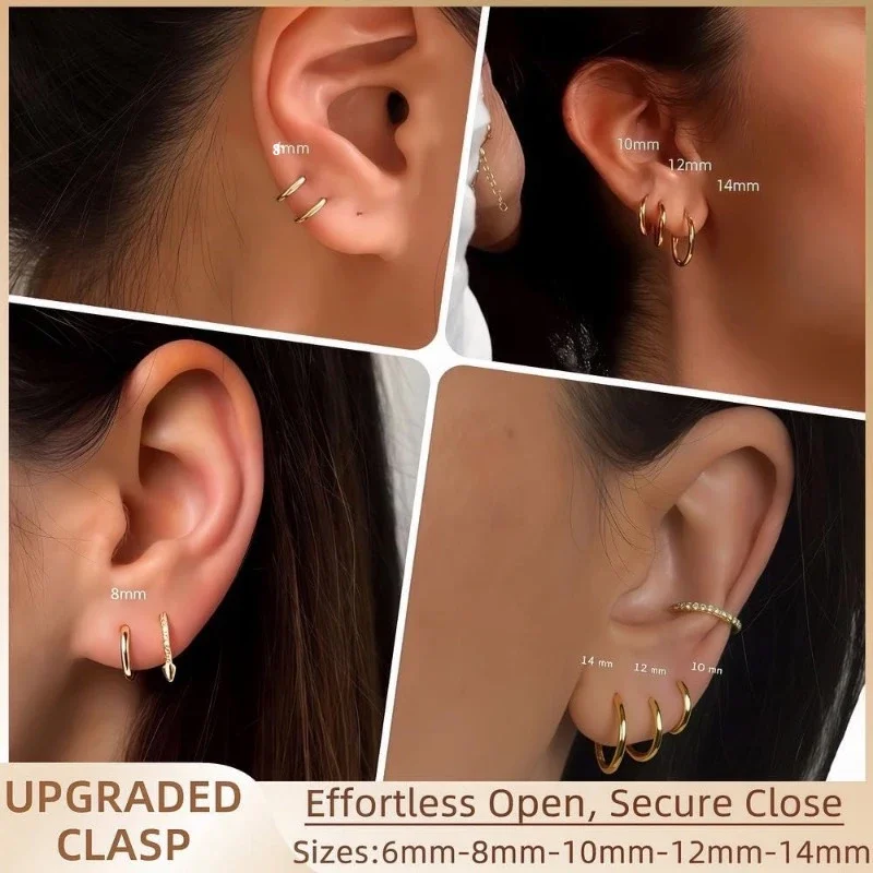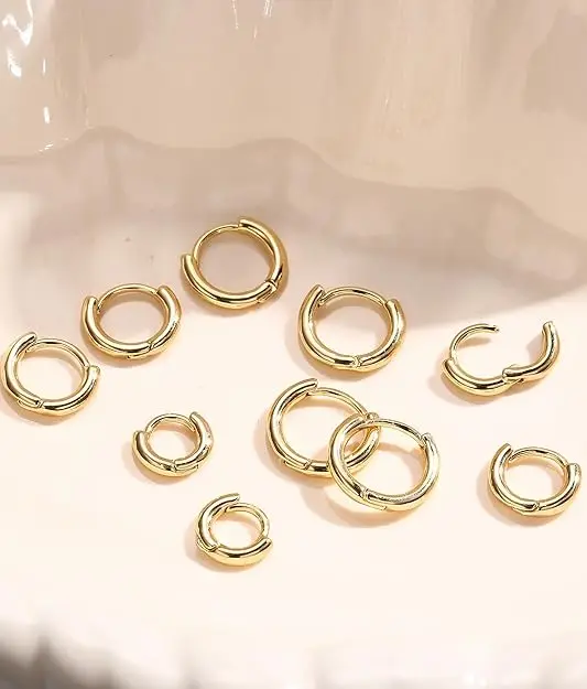 5 Pairs 14K Gold Plated Huggie Hoop Earrings for Women Lightweight Minimalist Small Hoops Multiple Piercing Stack Set Earrings