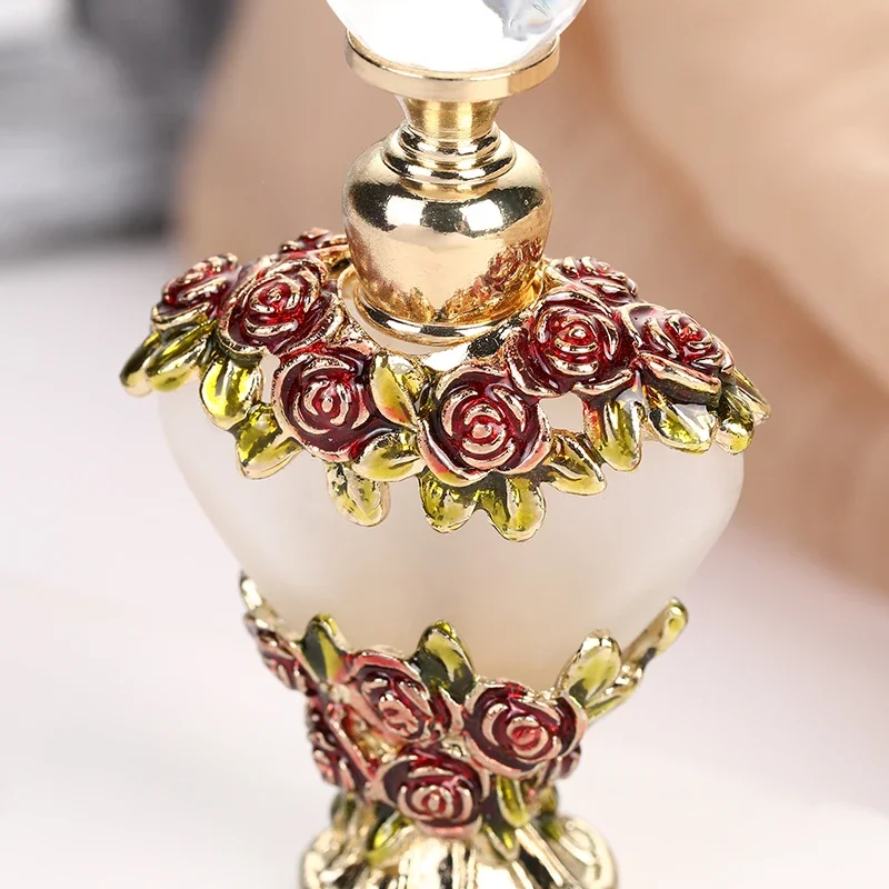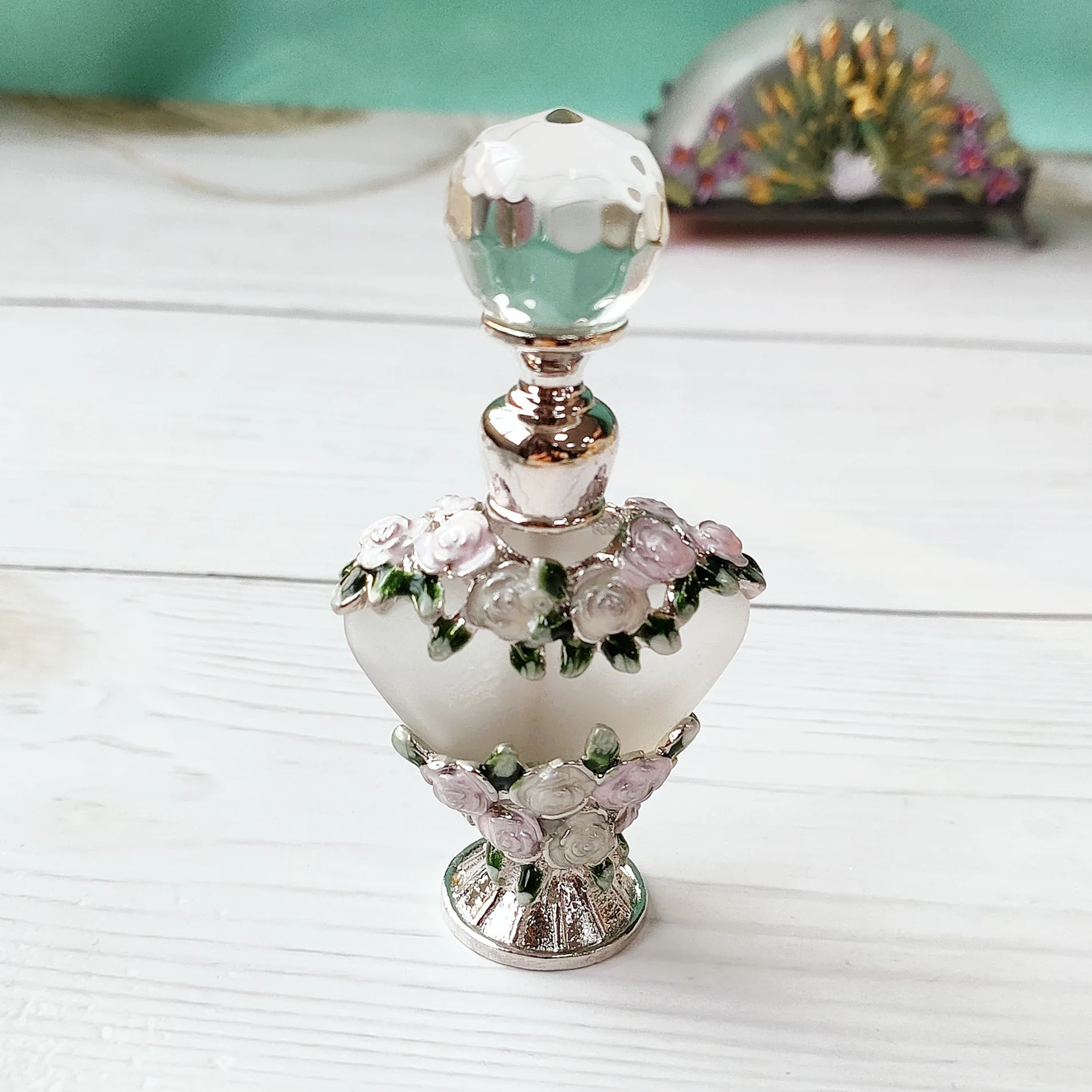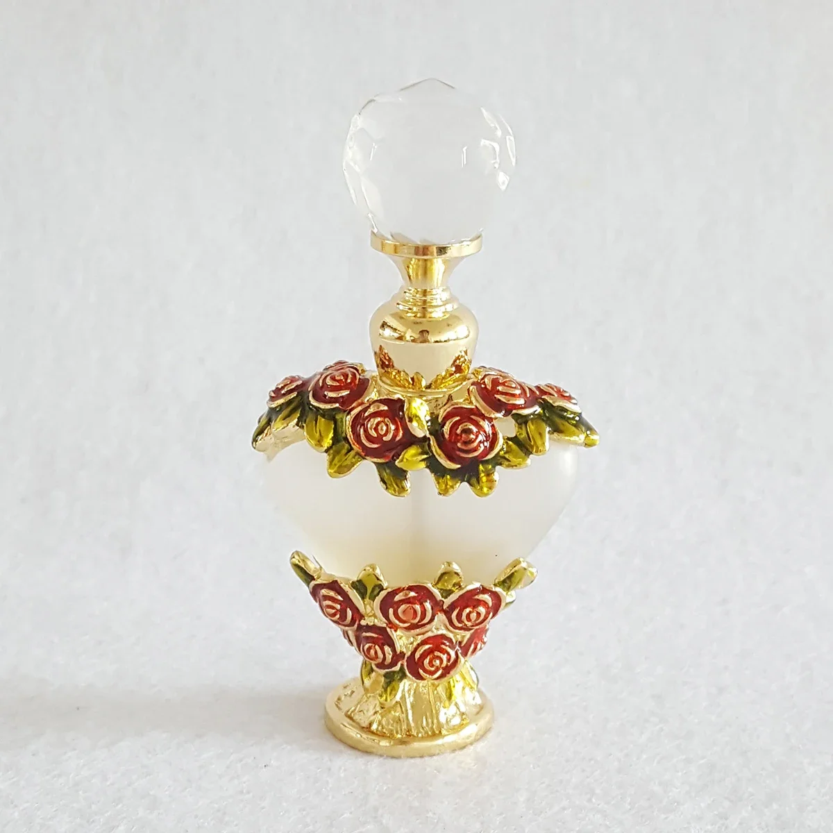 5ml Heart Metal Empty Red Rose Flowers Refillable Perfume Oil Attar Bottle Glass Container Gift Home Decor Wedding Favors 59701