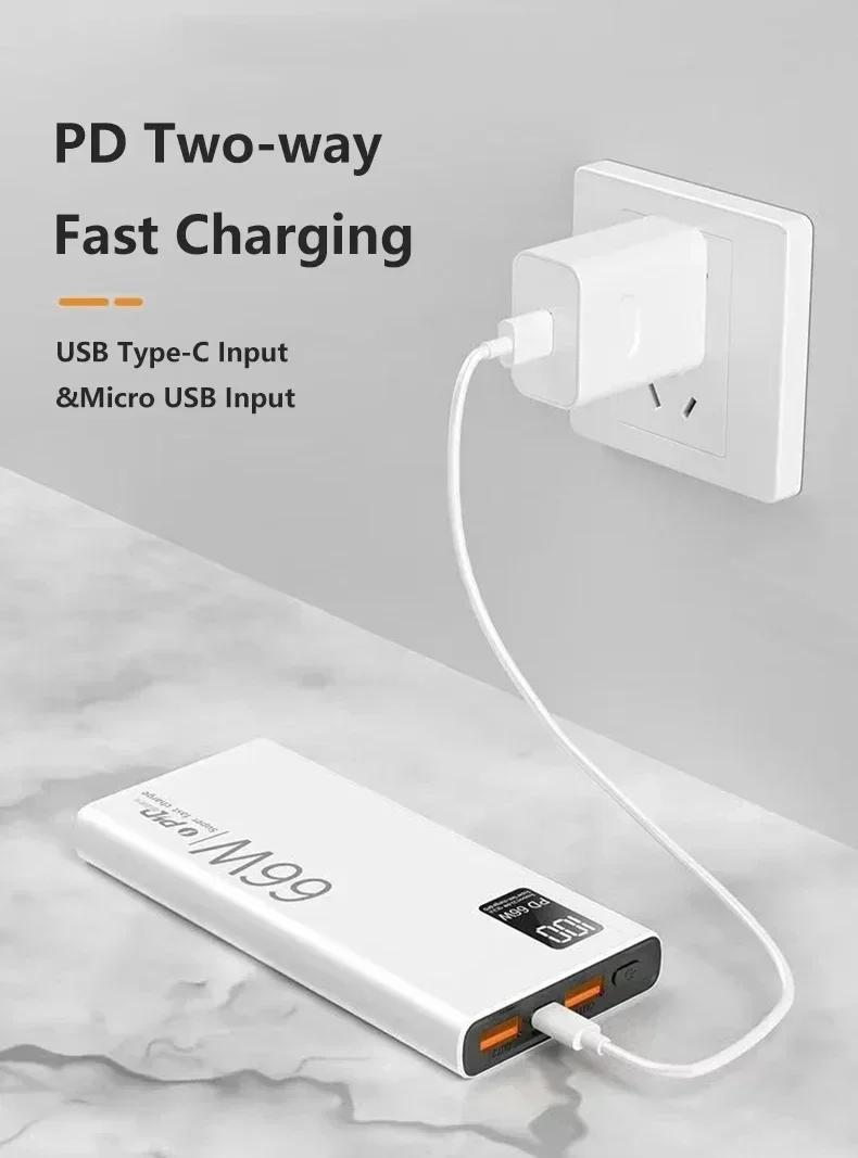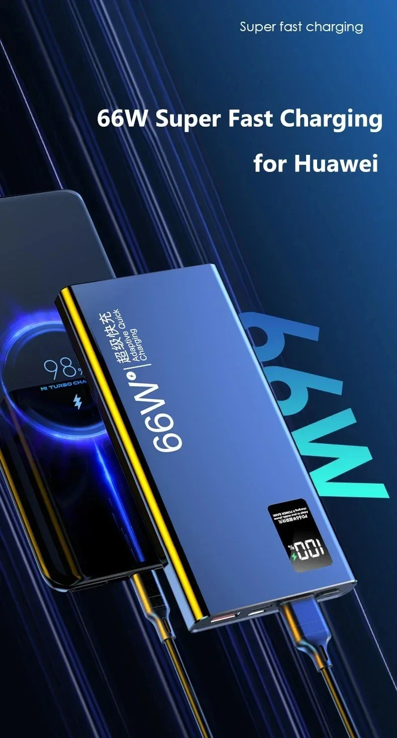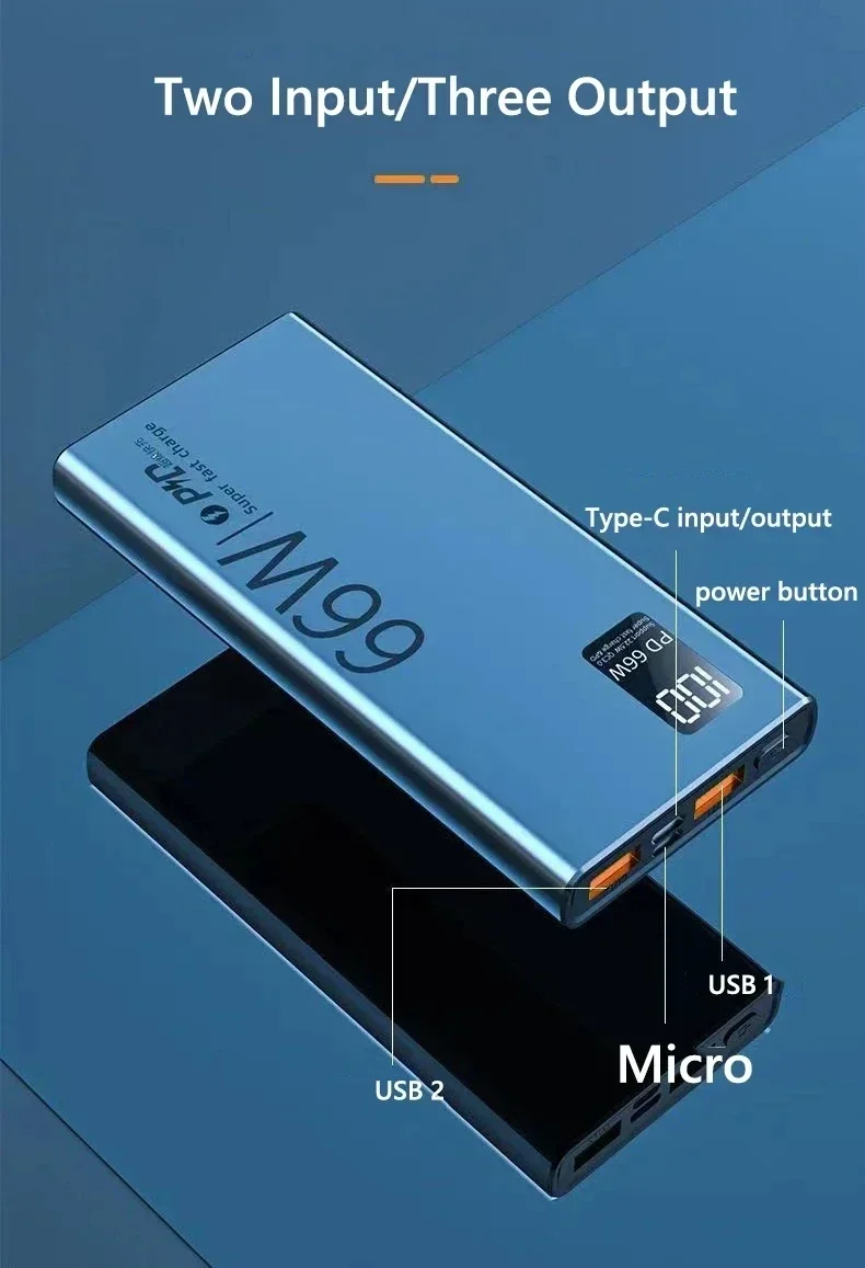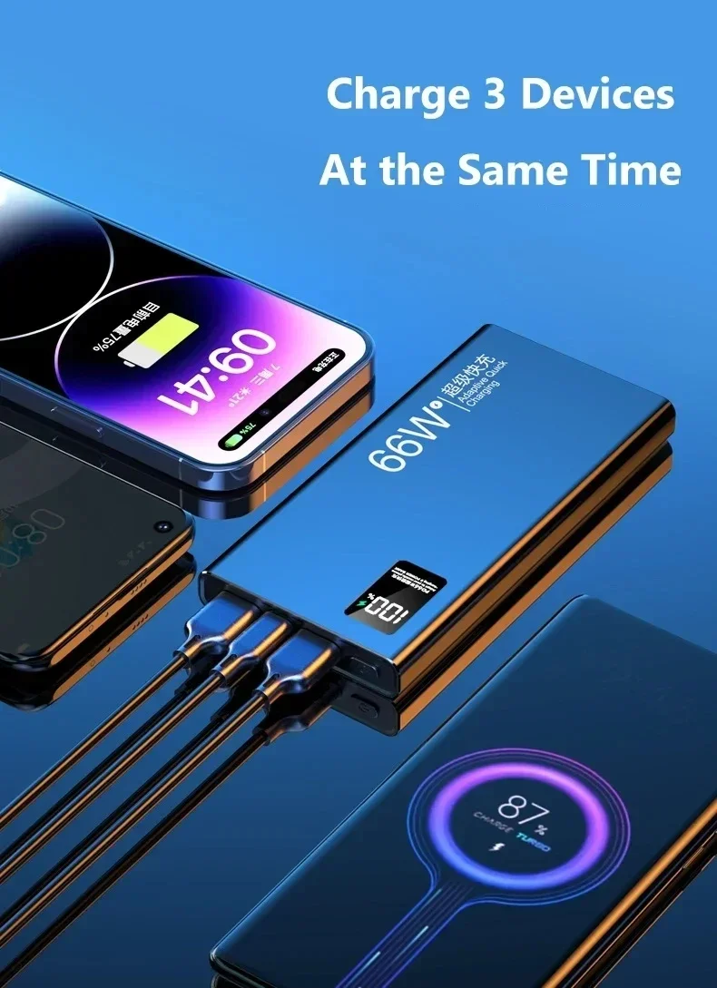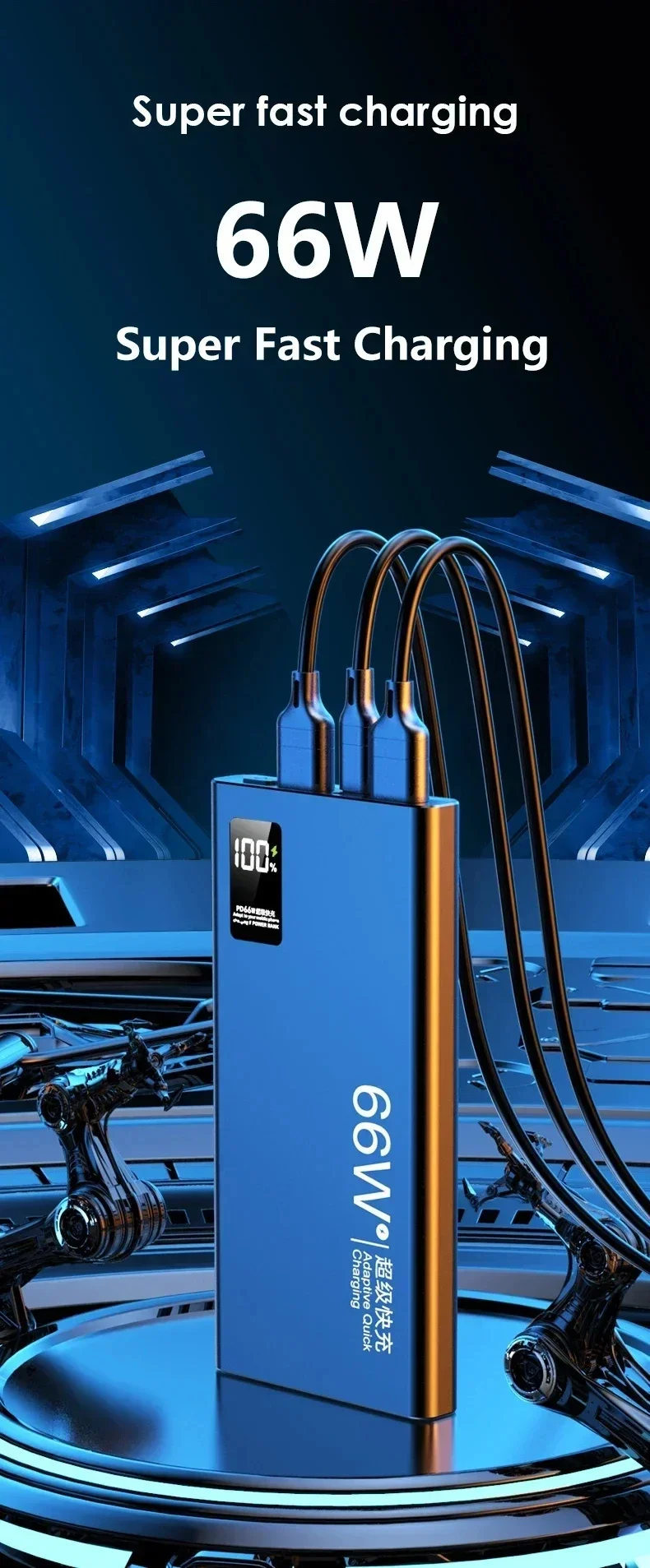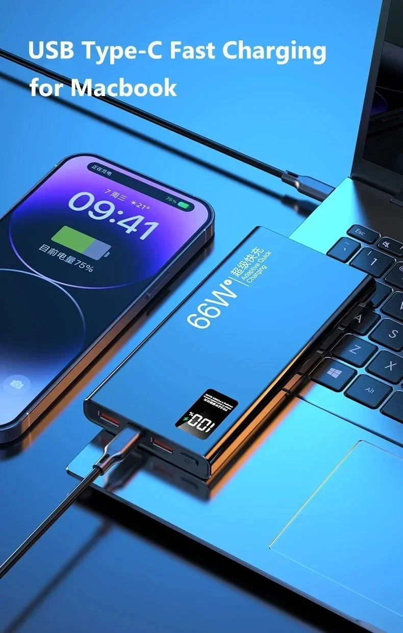 Despite its massive capacity, this power bank is surprisingly compact and lightweight, making it ideal for travel, outdoor adventures, or everyday use. Its sleek and ergonomic design fits comfortably in your hand or pocket, allowing you to carry it with ease wherever you go. Whether you’re commuting to work, exploring the great outdoors, or simply relaxing at home, this power bank provides reliable backup power whenever you need it most.