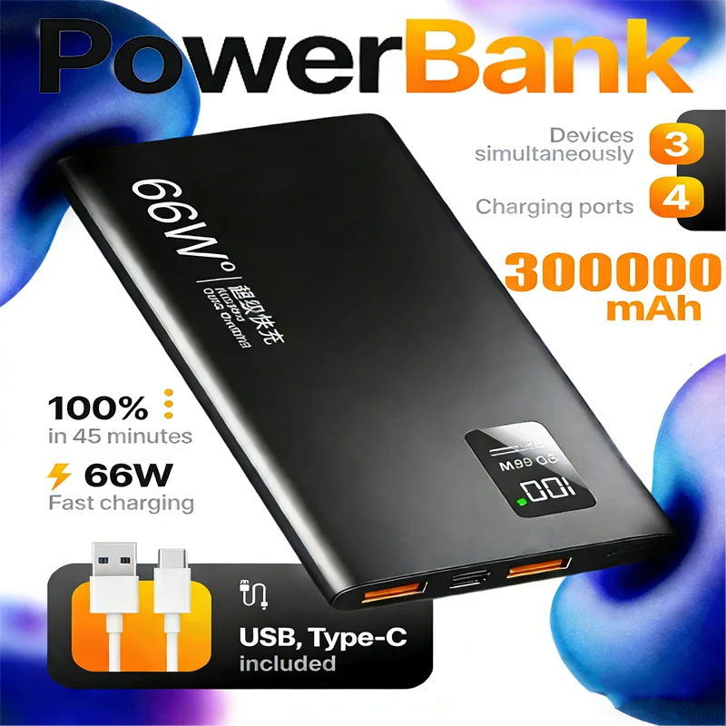 300000mah 66W Fast Charge Power Bank Large Capacity Portable External Battery LED Digital Display Two-way Quick Charge For Xiaomi