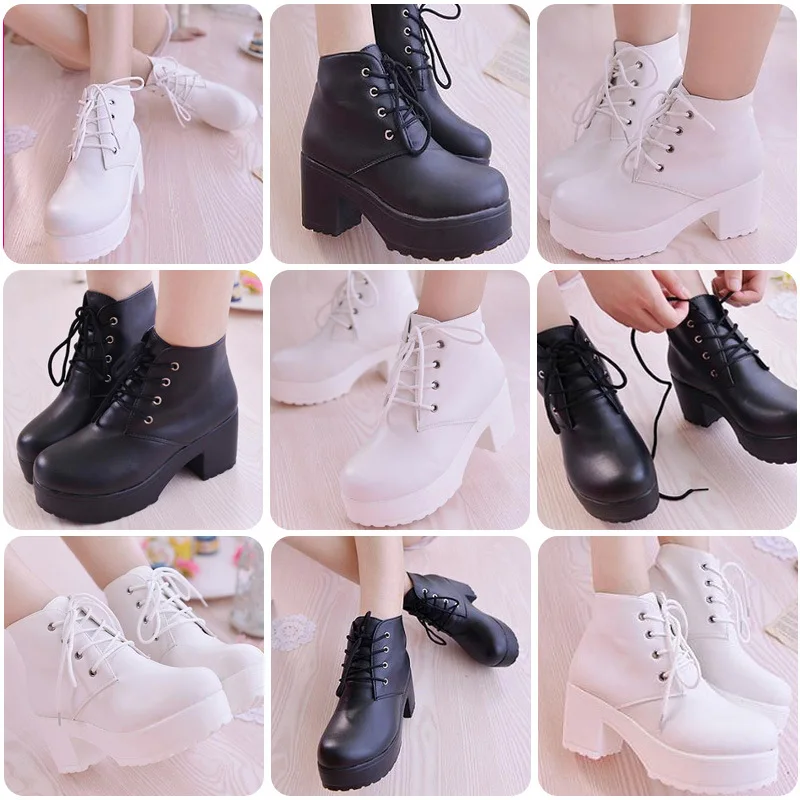 7CM Womens High Heeled Boots Fashion Lace Platform Shoes High End Designer Ankle Boots for Woman Comfort Casual Boot Botas Mujer