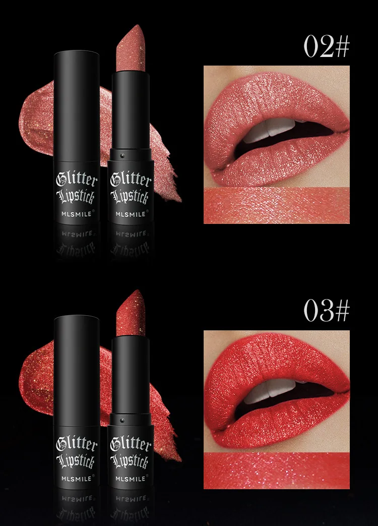 7Colors Glitter Lipstick Waterproof Long Lasting Diamond Pearlescent Metallic Lipstick Black Lipgloss Women Lips Makeup Cosmetic