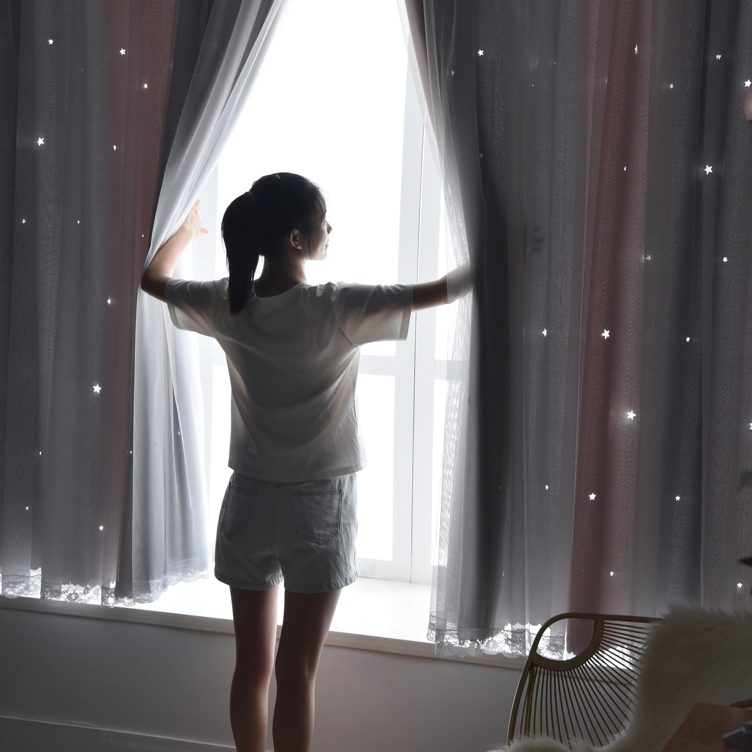 Aliexpress explosive home goods unique hollow stars Velcro curtain dream heat insulation shade to create a romantic home!