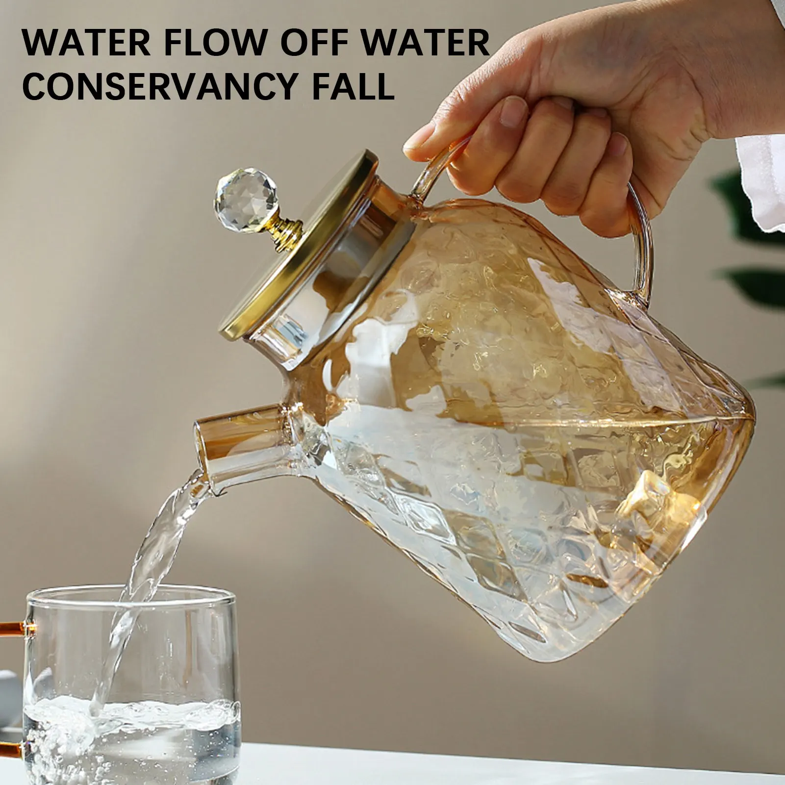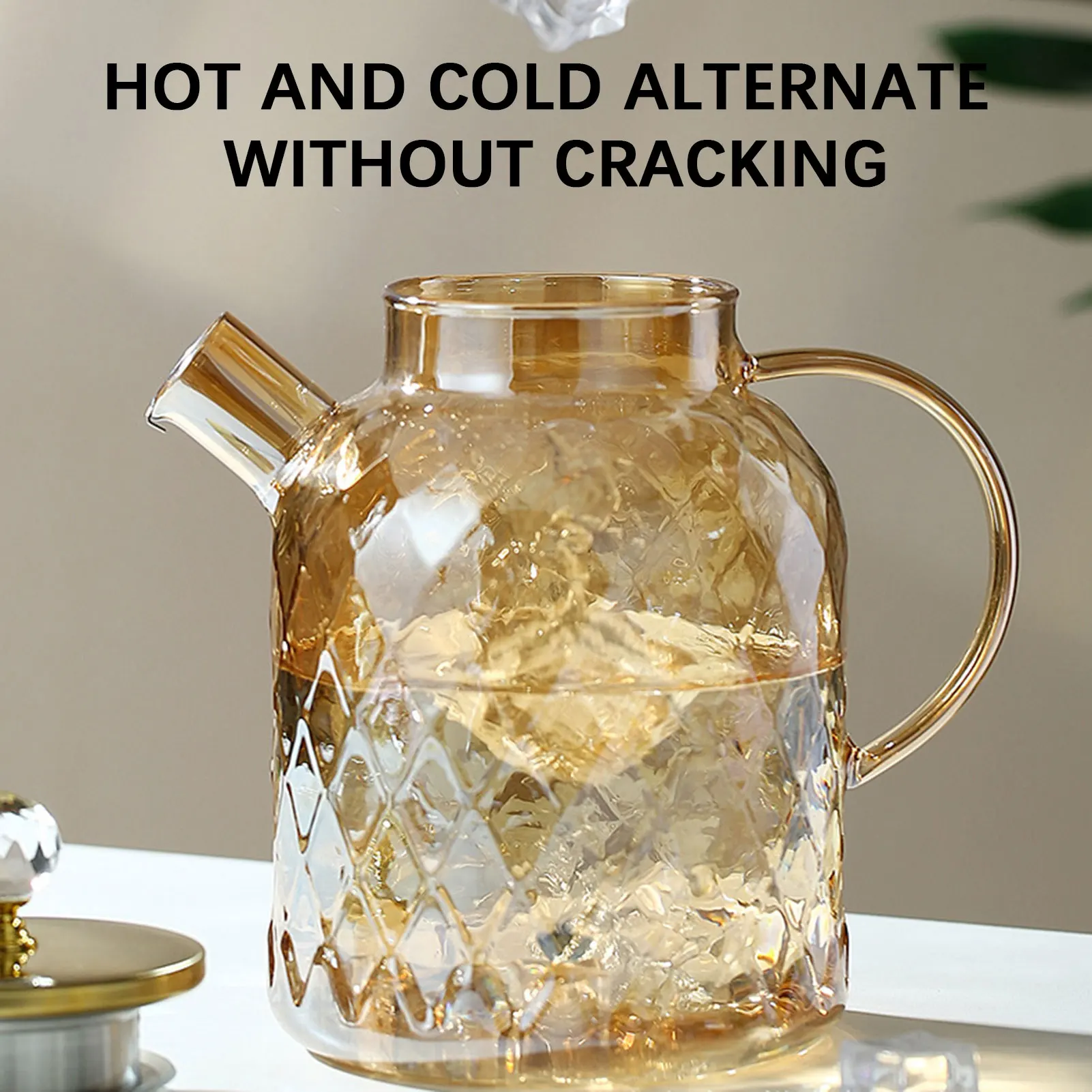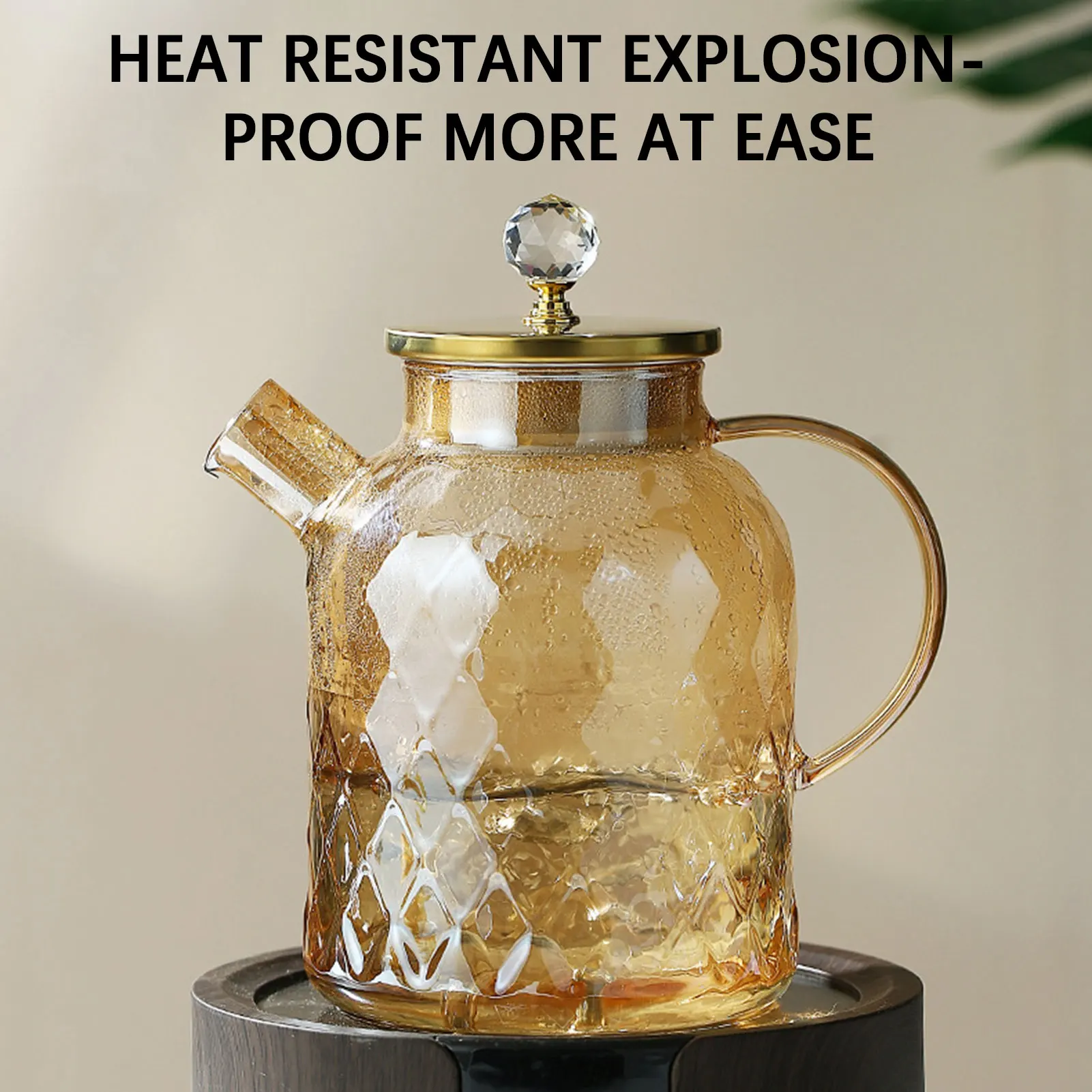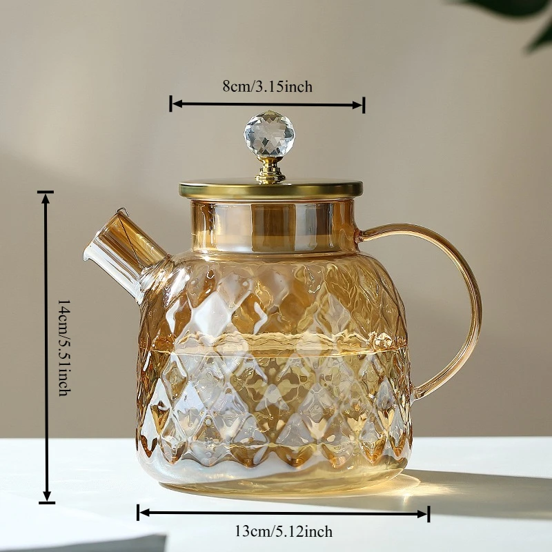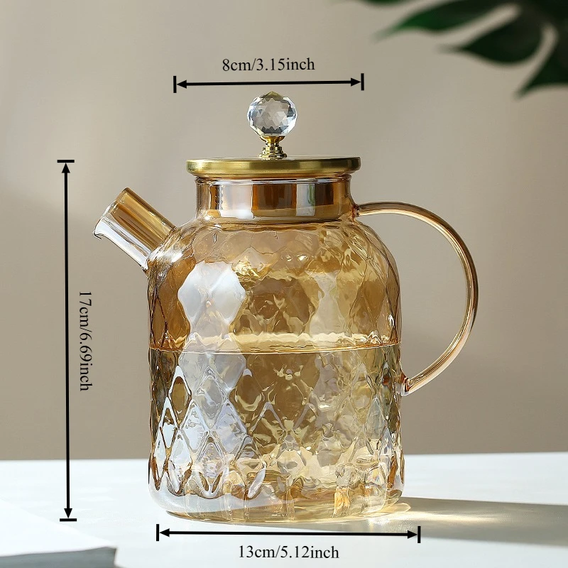 Amber High BorosilicateGlass Water Pitcher Transparent Large Capacity Heat-Resistant Jug with Stainless steel Lid Kitchen Tool