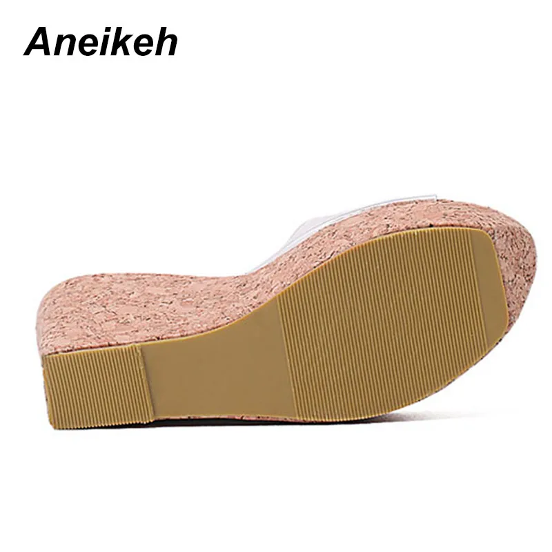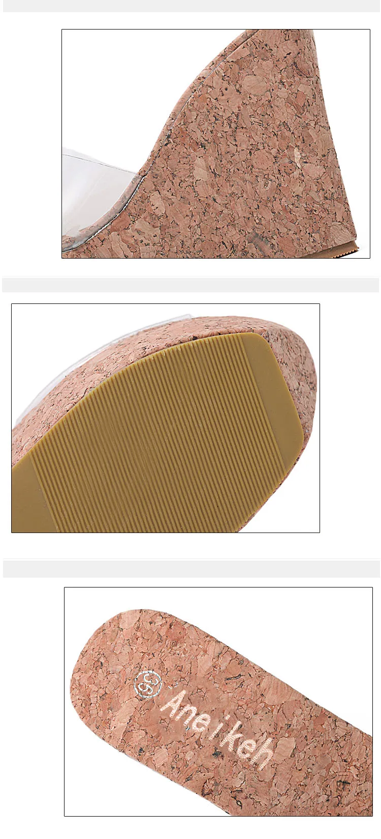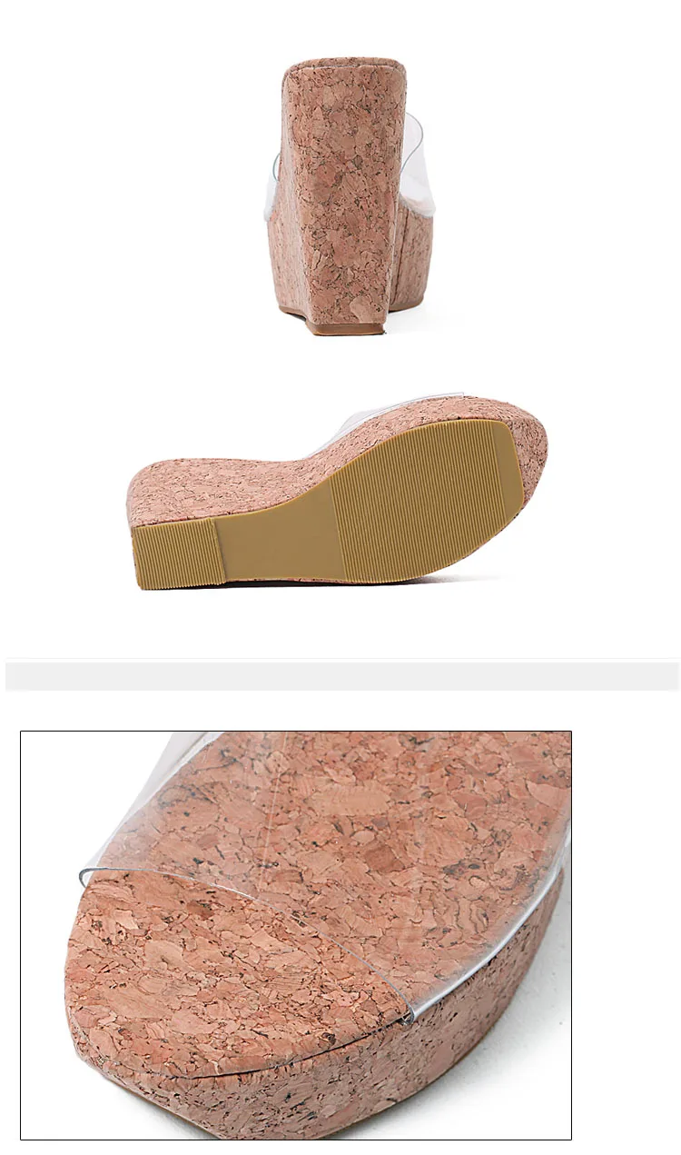 Aneikeh Sexy Summer Women Clear Transparent Platform Wedges Sandals Ultra High Heels Wooded Mule Silde Shoes Outdoor Creepers