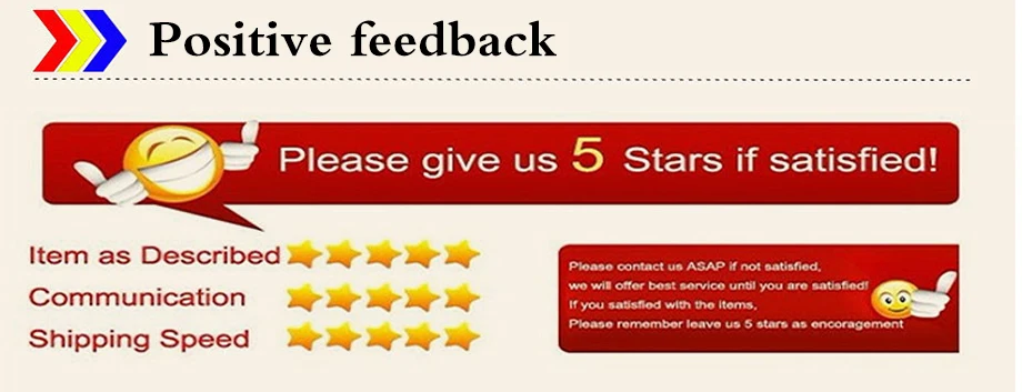 1.lf you are satisfied with your order ,please leave us all 5 stars including ltem as Described.Communication and Shipping Speed.