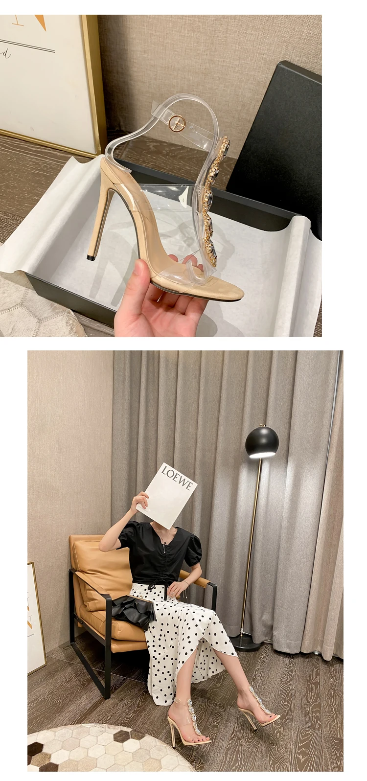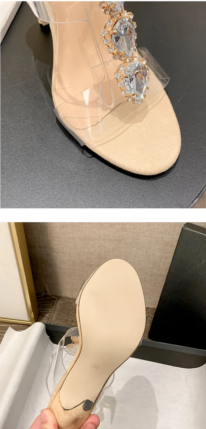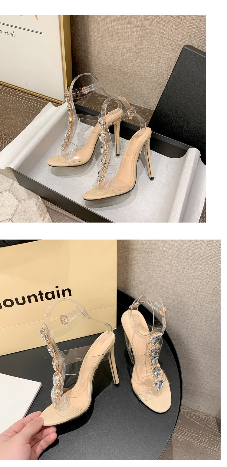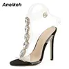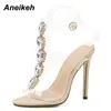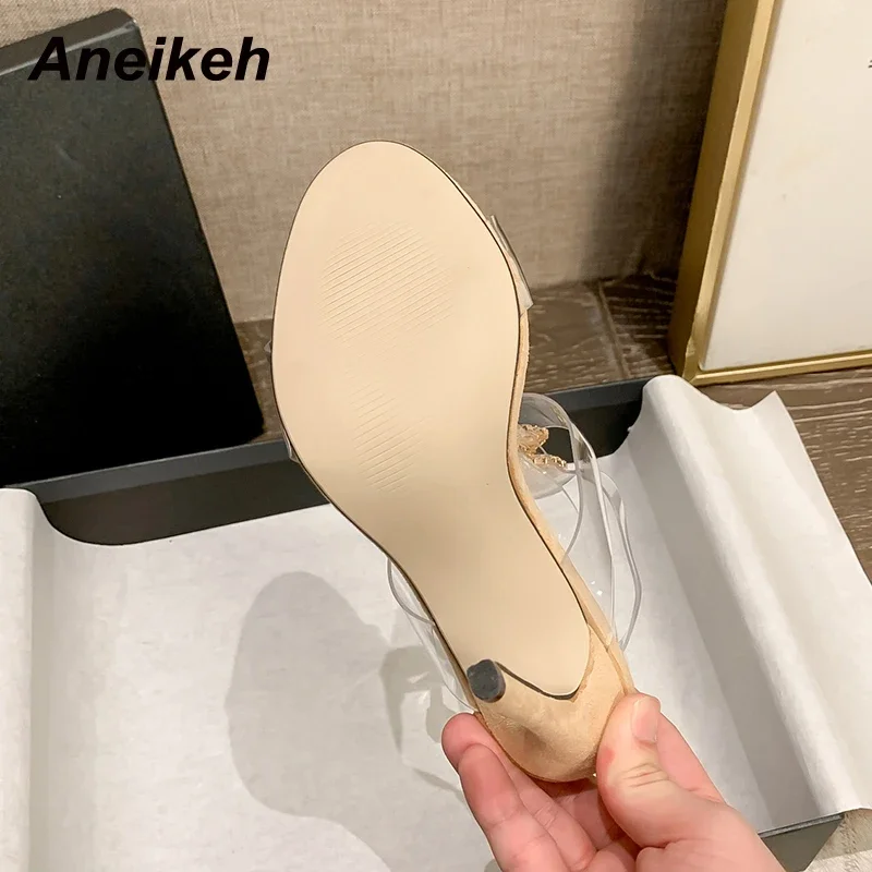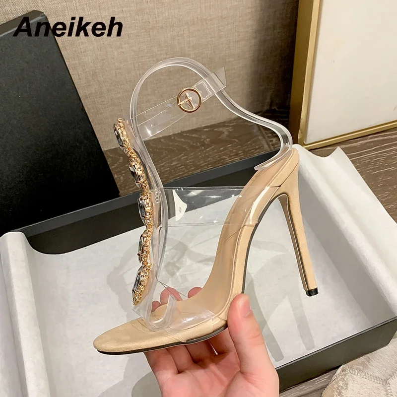 Aneikeh Summer Sandals Party PVC Heart-shaped Crystal Buckle Fashion Sandalias Mujer Shoes for Women 2026 Thin Heels Drill Nove