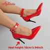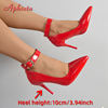 Aphixta Metal Belt Buckle Strap Pimp Red Black 10cm Stiletto Heels Pumps Women Party Shoes Rivets Pointed Toe Size 51 52 53