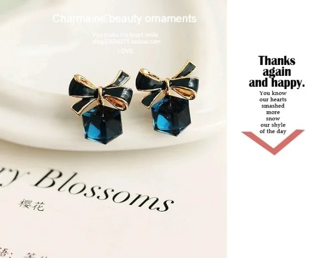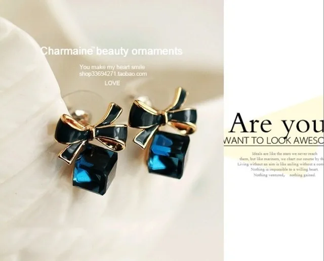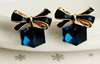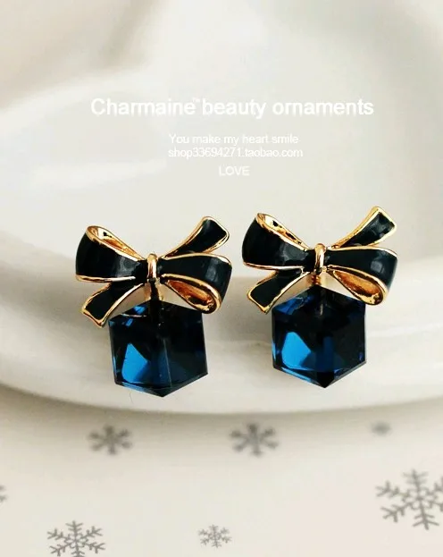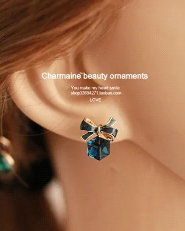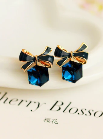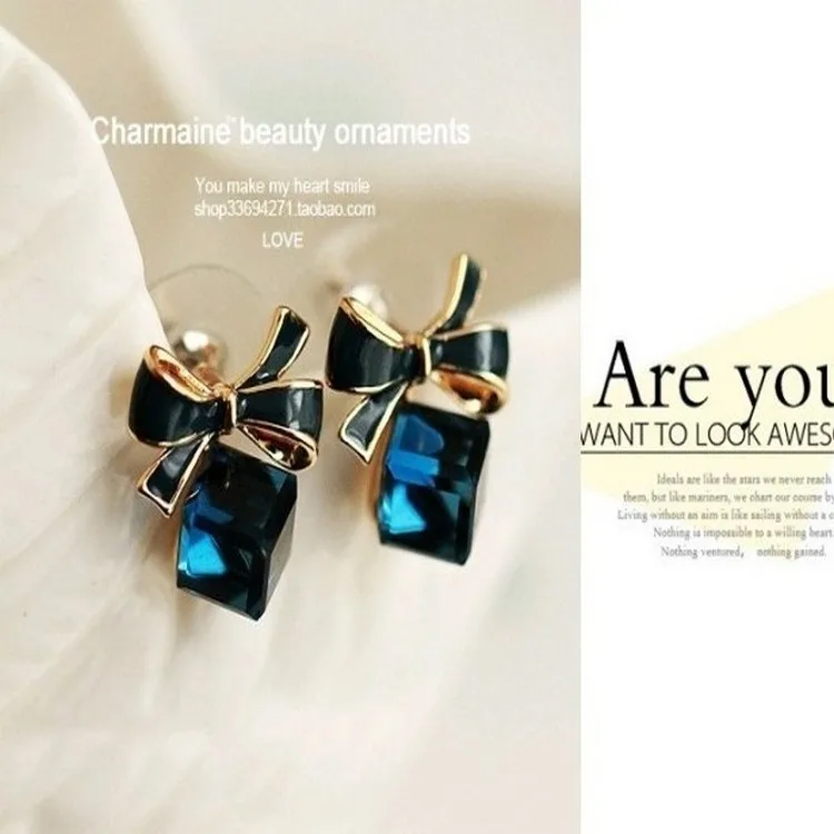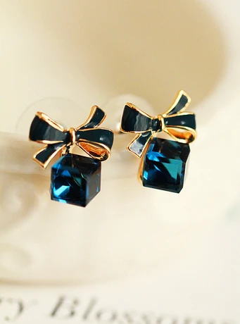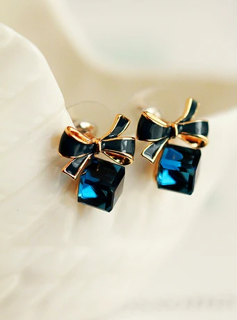 Austria Exquisite Crystal Blue Water Cube Box Cube Stone Bow Couple Earrings Jewelry Wholesale Earrings For Women Oorbellen