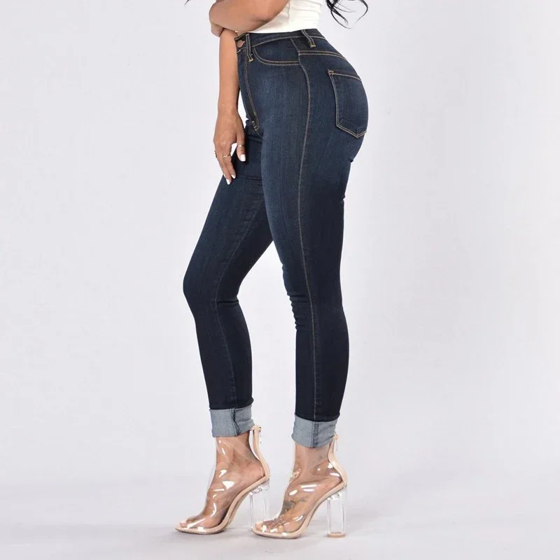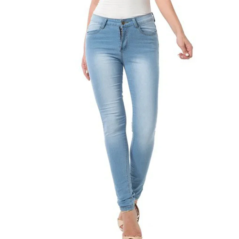 Autumn and winter women’s clothing slim fit blue jeans stretch denim women’s high waisted light colored washed denim jeans