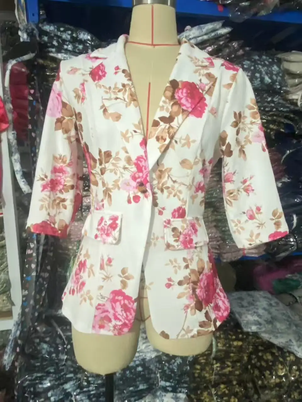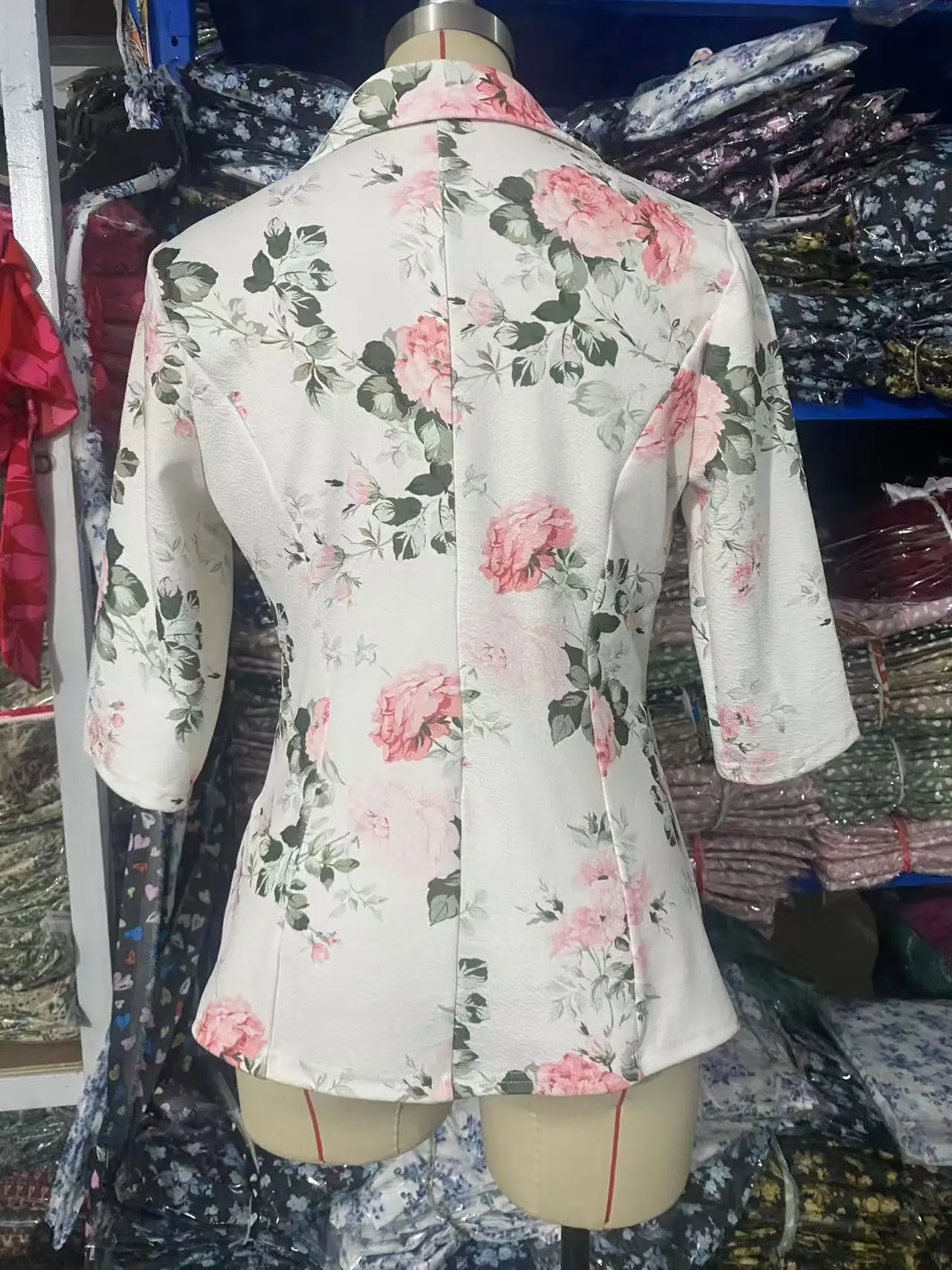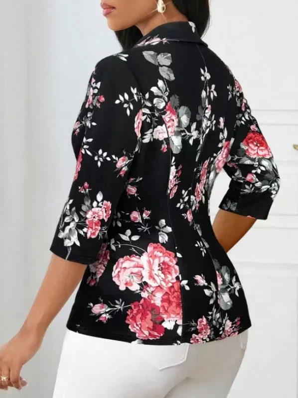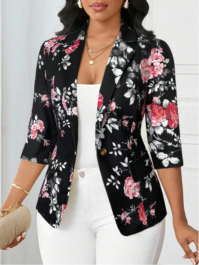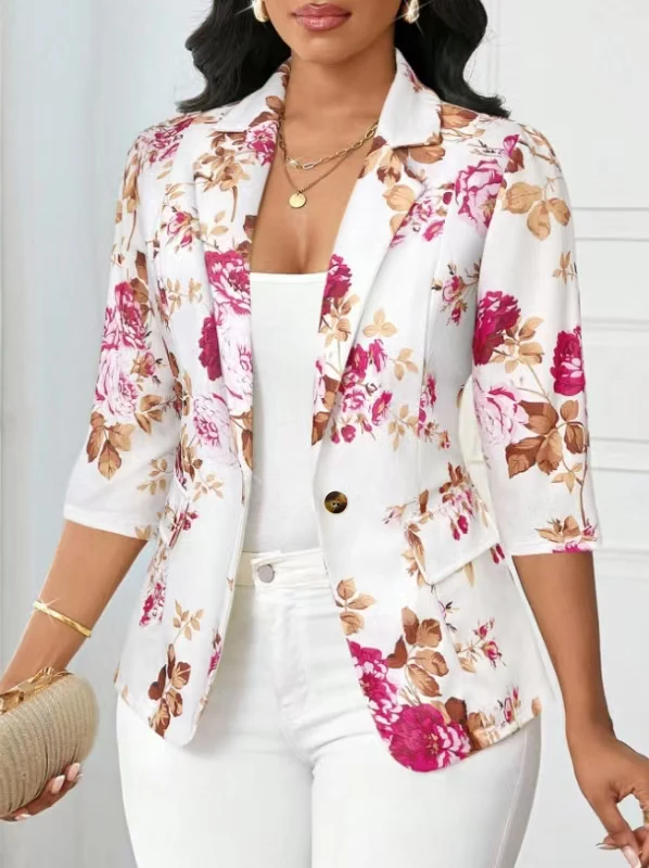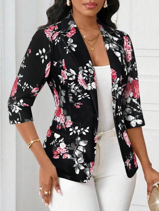 Autumn Blazer 2025 7/10 Sleeves Printed Suit Jacket Small Outerwear Polyester Fiber Regular Sleeve Length Full Button Decoration