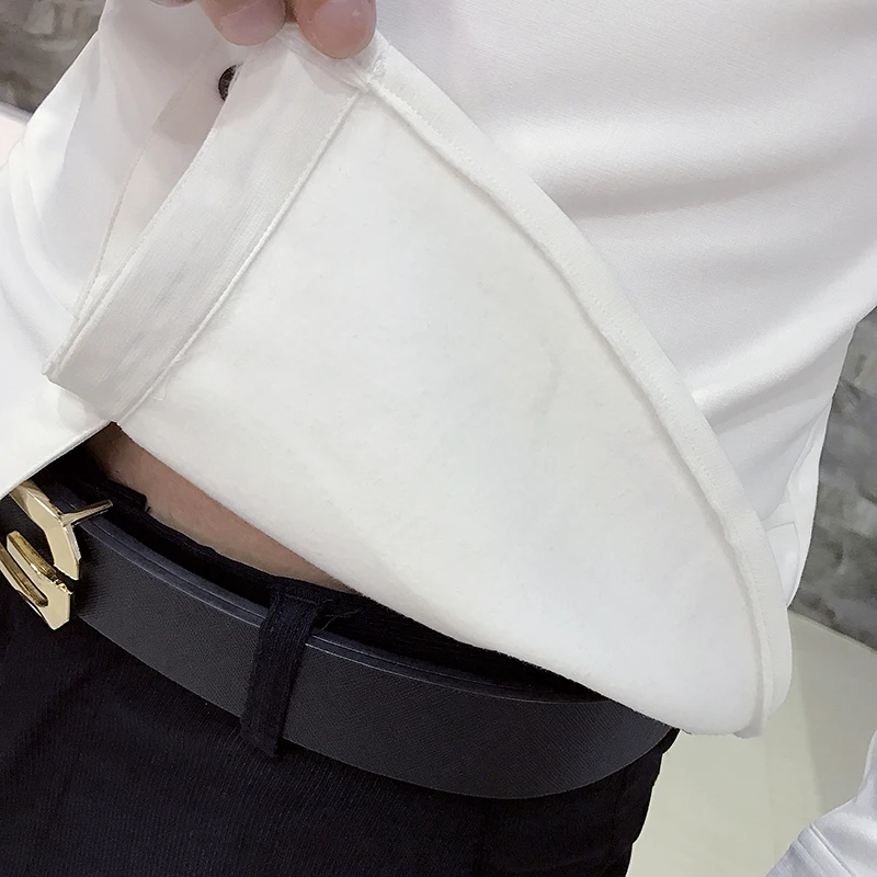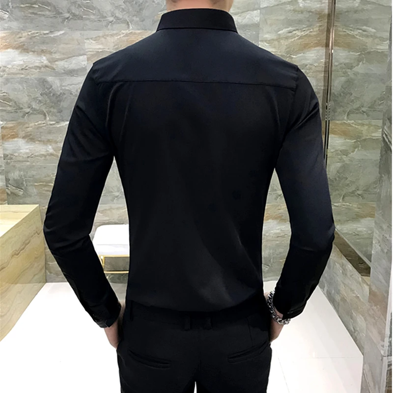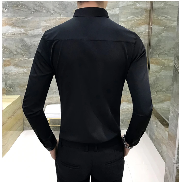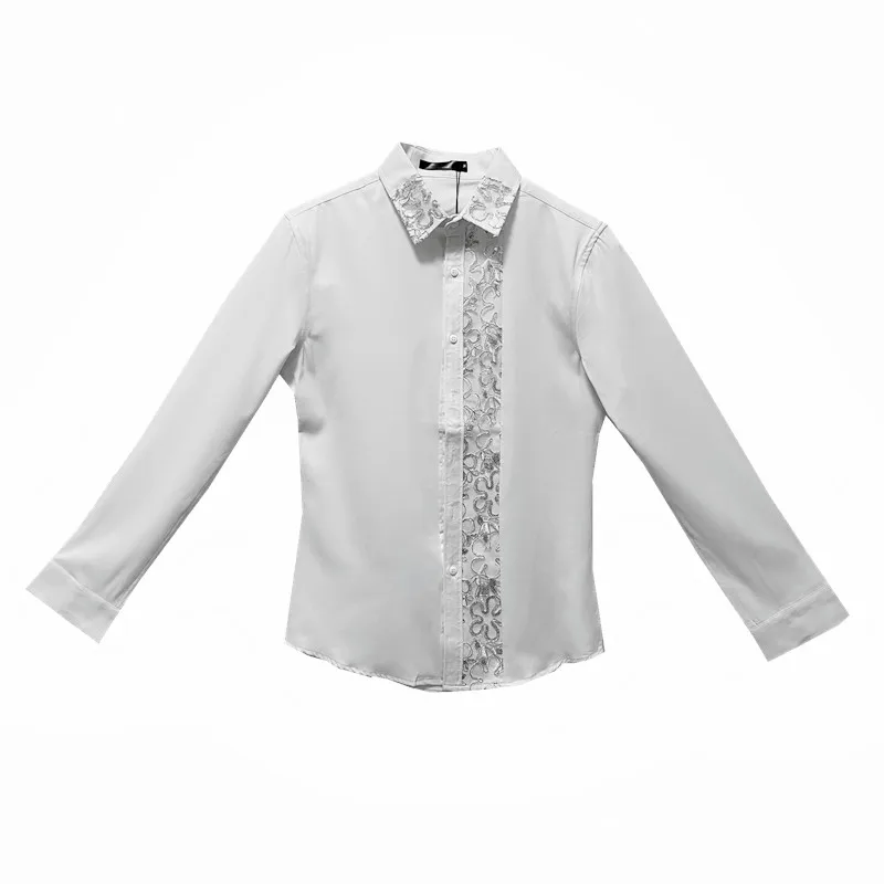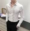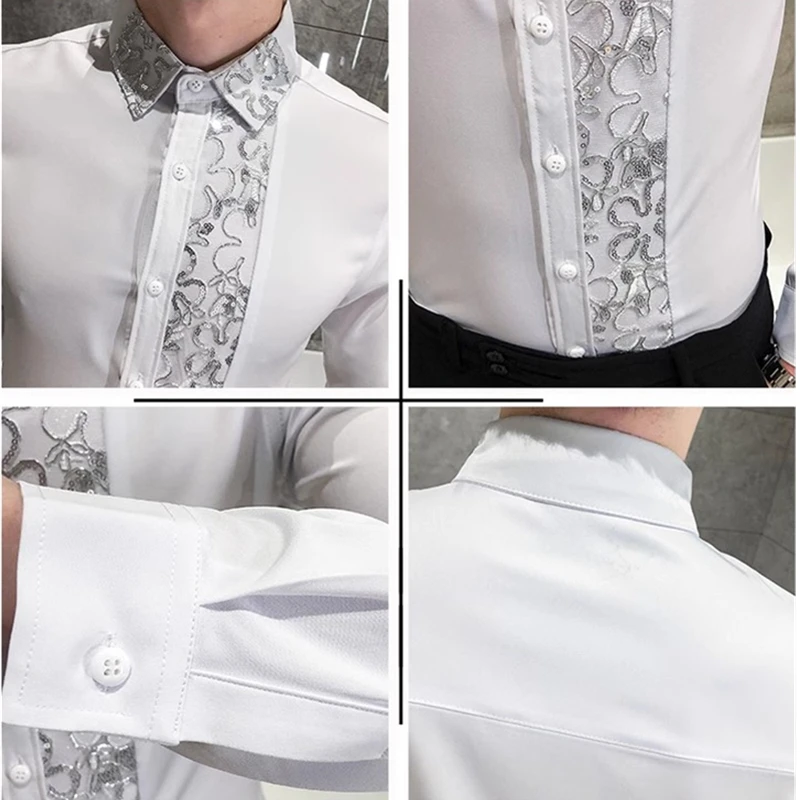 Autumn White Fleece Long Dress Shirt Men’s, Fashion Slim Men Shirts,QJ CINGA Brand New Male Top Lace Stitching Decoration Camisa