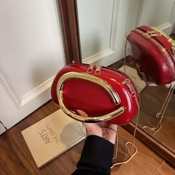Z Style Small Square Clutch Bag Evening Bag With Special-shaped Metal Chain Luxury Shoulder Bag Decorative Box-style Design